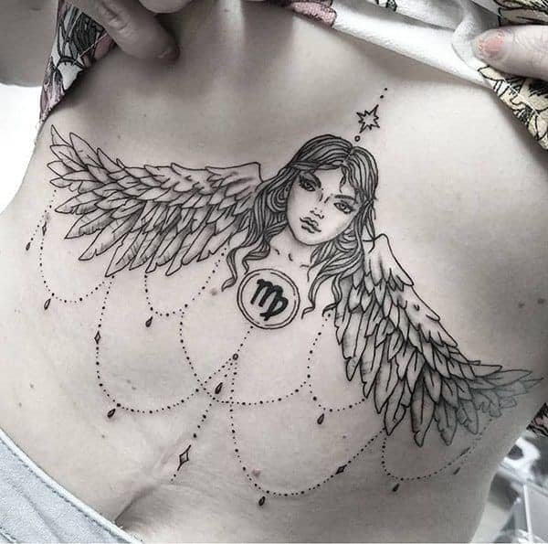 - Тату знак зодіаку Діва на грудях;