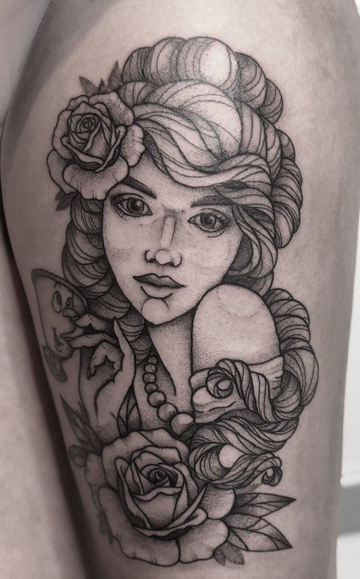 У більшості випадків тату Діви роблять у чорному кольорі.