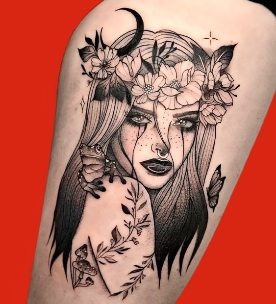 Серед найбільш часто використовуваних елементів для ескізів татуювань Діви є: