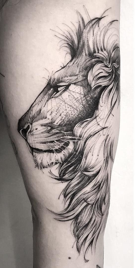 Серед найпопулярніших технік виконання тату знак зодіаку Лев:
