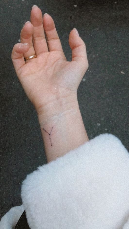 - Зап'ястя: Тату знак зодіаку Рак, а особливо тату сузір'я Рак на цій частині тіла виглядає дуже елегантно. Не дивно, що жінки часто вибирають зап'ястя для мінімалістичних і мініатюрних зодіакальних ескізів;