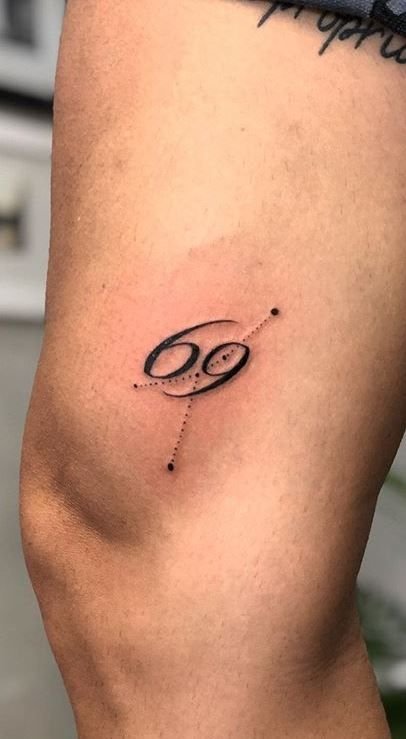 Перевернута цифра 69 - інший популярний символ знака зодіаку Рак, який часто використовують в ескізах. Вважається, що цей знак означає перевернуті клешні рака, а також уособлює концепцію Інь і Ян.