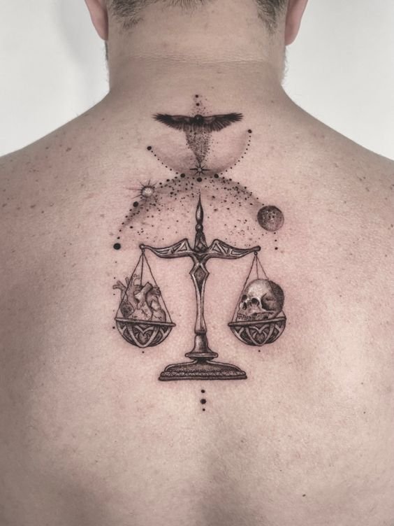 Татуювання з вагами може не тільки підкреслити такі риси, як агресивність, впевненість і мужність, але і врівноважити їх, зробивши людину більш спокійною і зосередженою.
