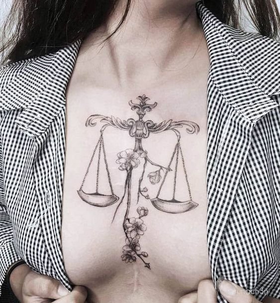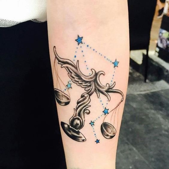 Татуювання із символами Терезів також популярні серед жінок.