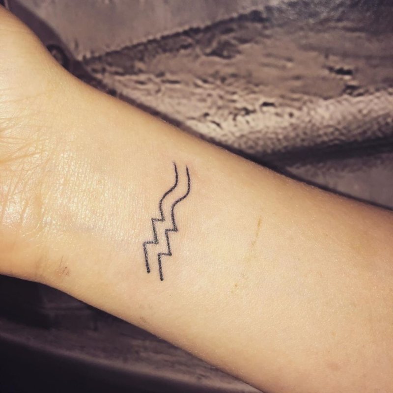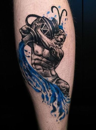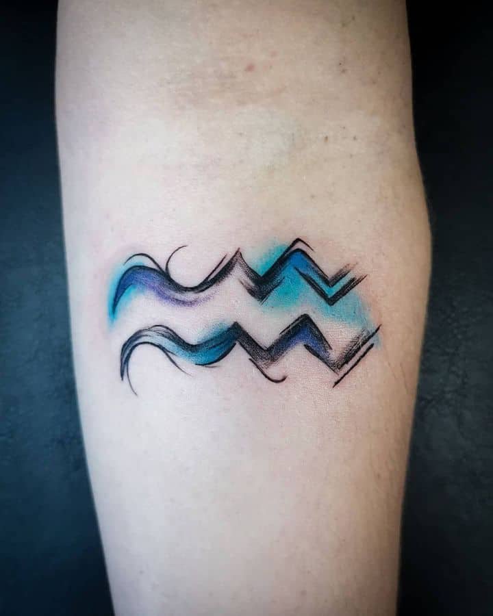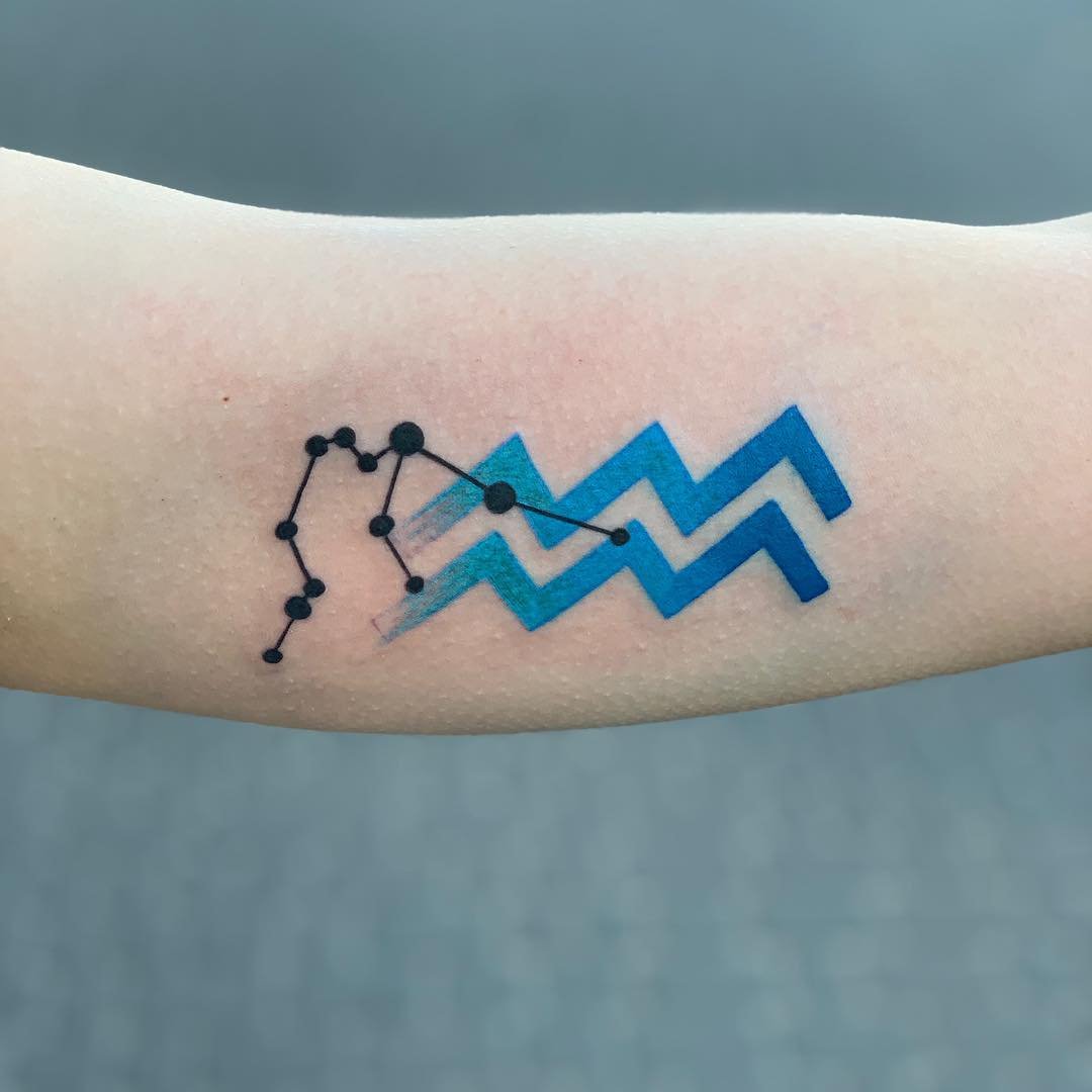 Тату знак зодіаку Водолій виглядає оригінально і навіть загадково.