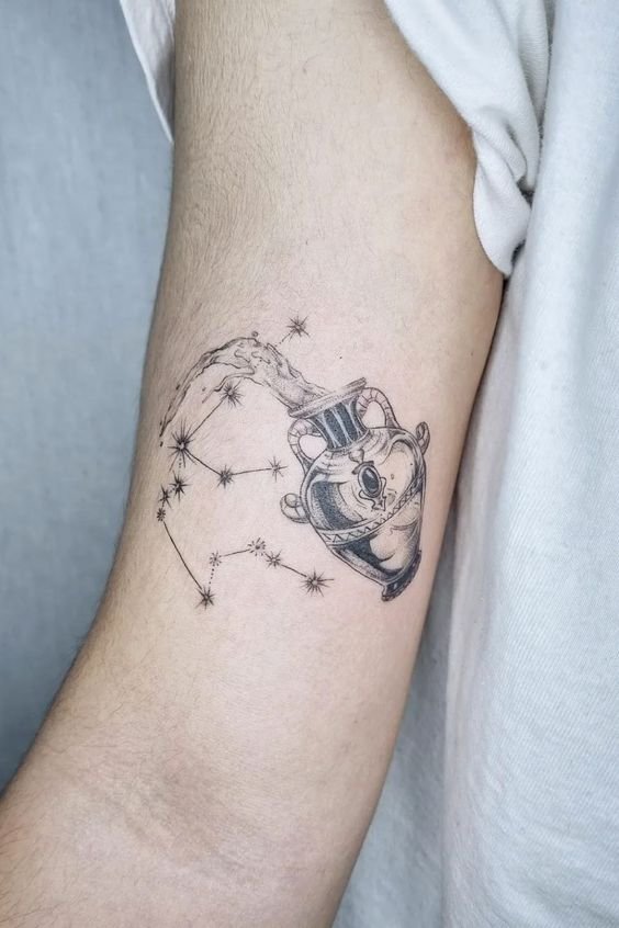Серед найпопулярніших елементів для тату знак зодіаку Водолій виокремлюють наступні: