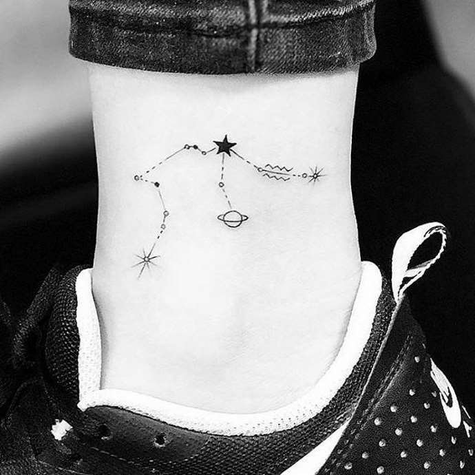 - Тату сузір’я знак зодіаку Водолій на щиколотках.
