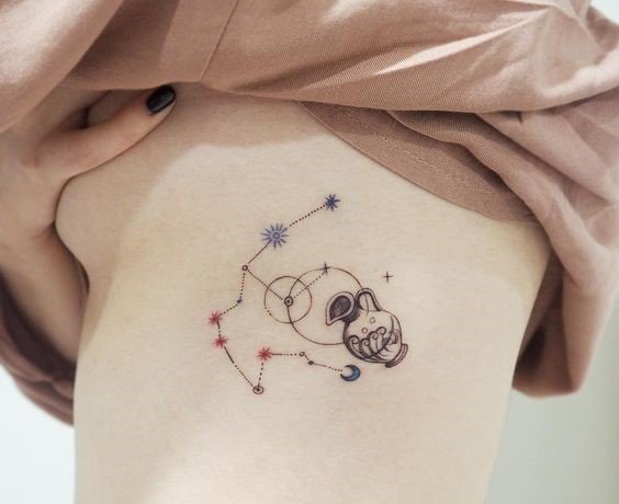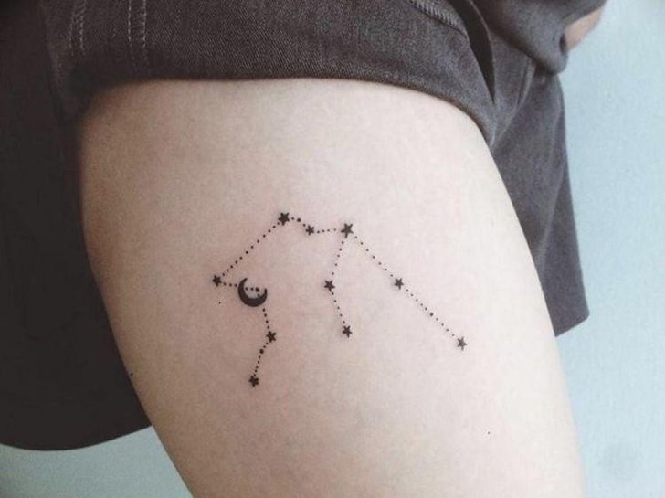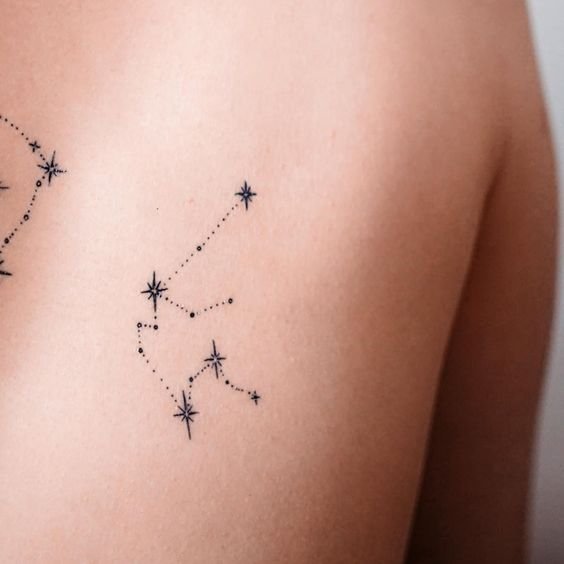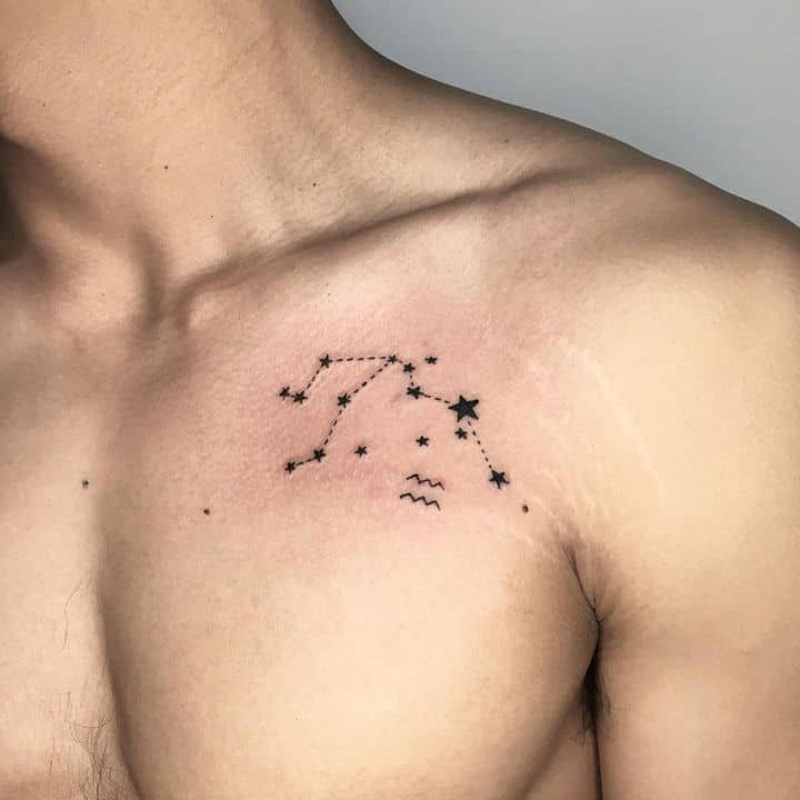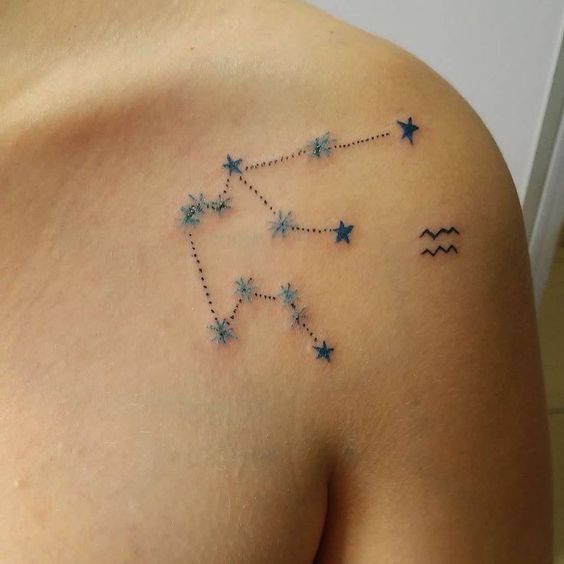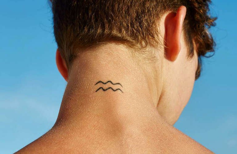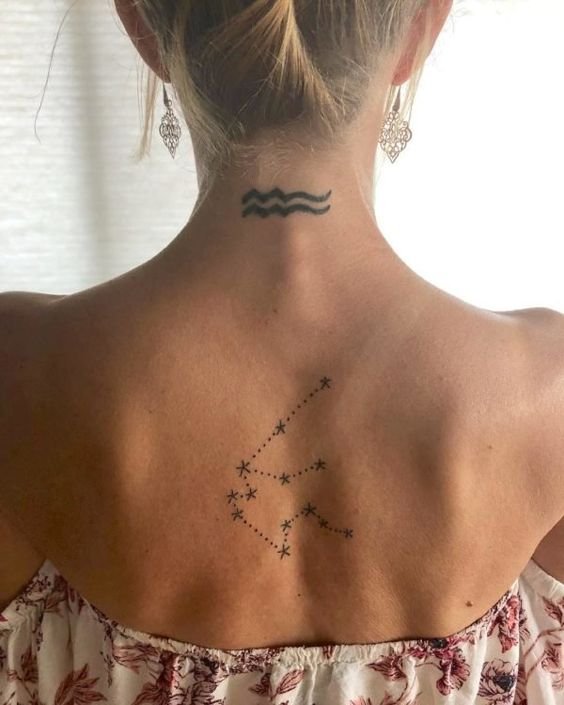 - Тату сузір’я знак зодіаку Водолій на шиї;