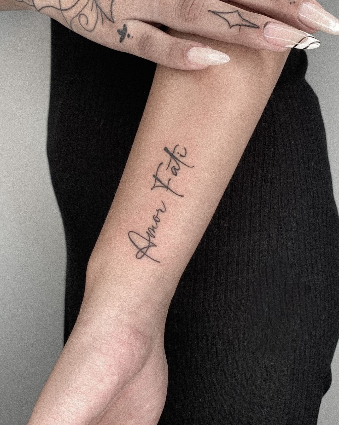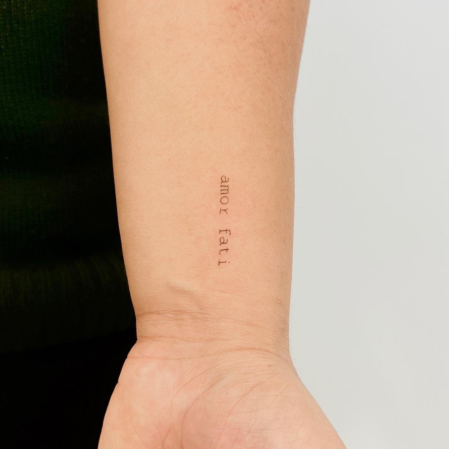 Таким чином, татуювання "Amor Fati" — це символ глибокої філософської ідеї, яка може стати потужним мотиватором і джерелом натхнення для свого власника. Вона нагадує про те, що в житті важливо приймати всі її аспекти і знаходити в цьому свою силу. Для тих, хто шукає гармонію і внутрішній спокій, "Amor Fati" може стати ідеальним вираженням їх життєвої філософії та нагадуванням про те, що кожна мить життя цінна.