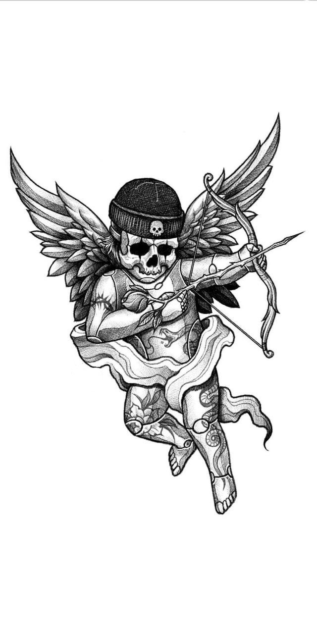 Часто можна зустріти тату з темною крилатою істотою. Темний ангел (Жнець душ) означає, що людина боїться смерті, тату кожен день нагадує про те, що в житті потрібно цінувати кожну мить.