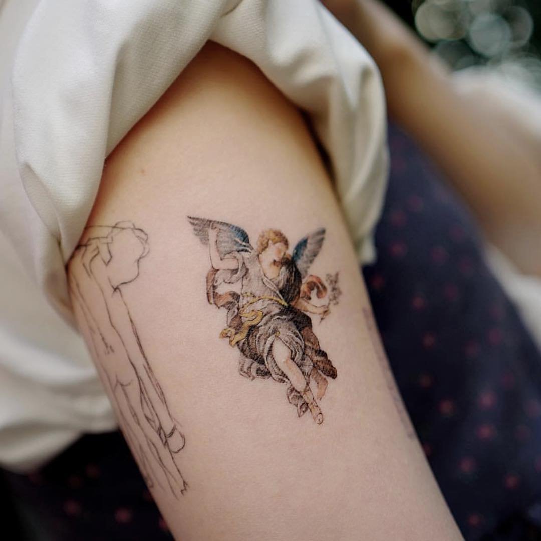 Зображення ангела, який молиться, є одним з найбільш популярних татуювань.