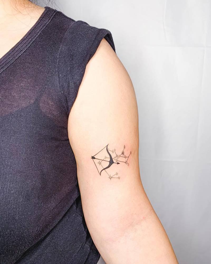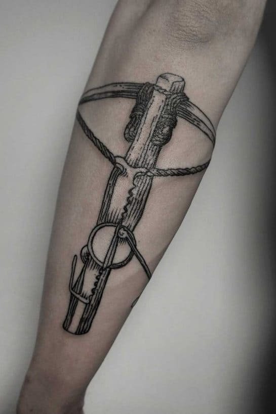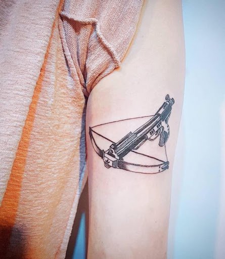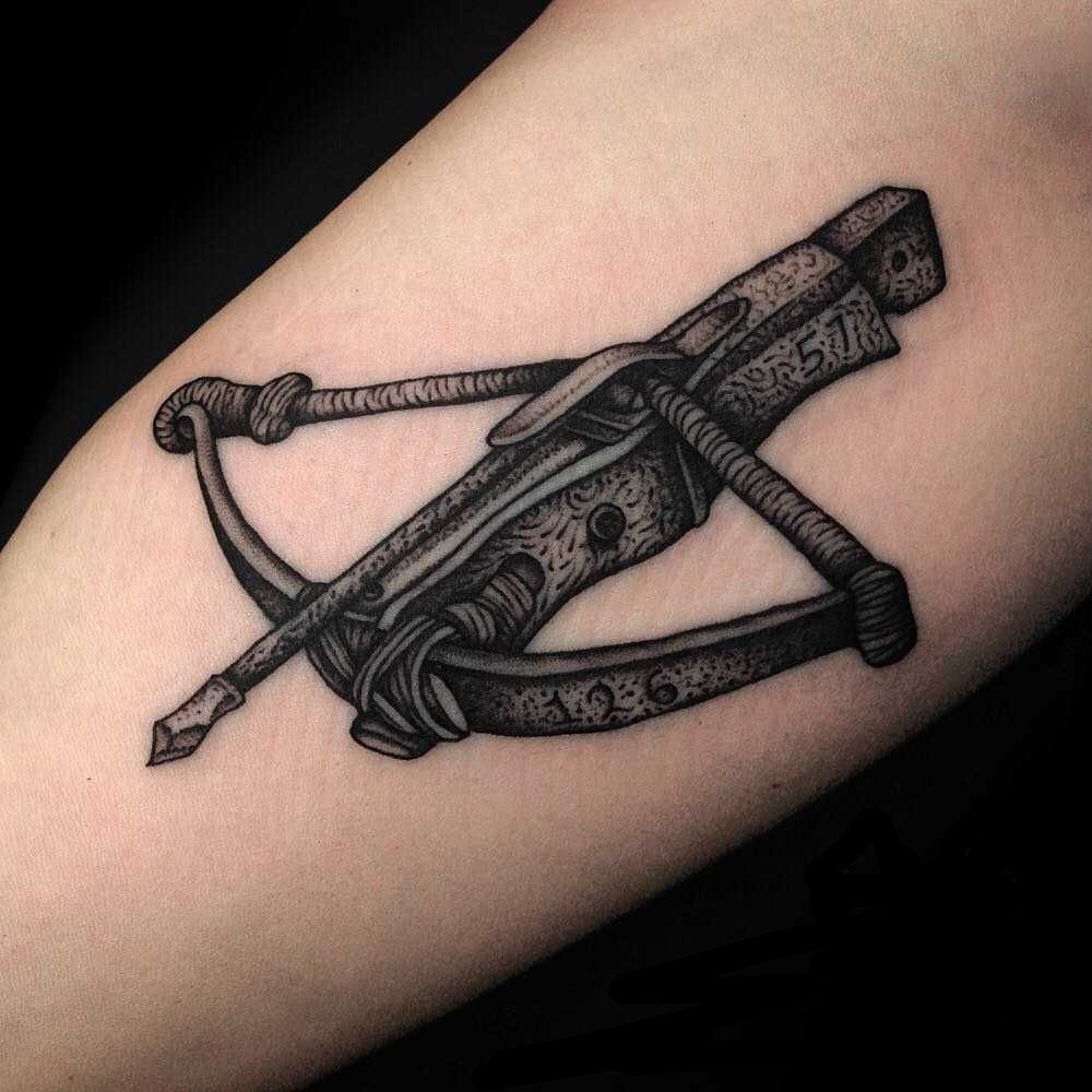 Зупиняючи ж вибір на татуюваннях які не дуже популярні, ми можемо зіткнутися й з нестандартними значеннями картинок. Татуювання у вигляді арбалета також несе в собі прихований сенс.