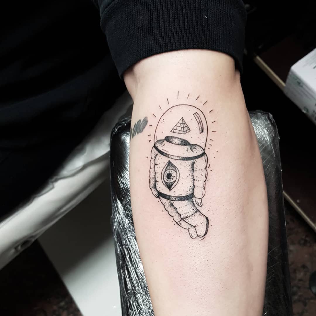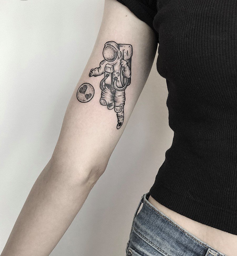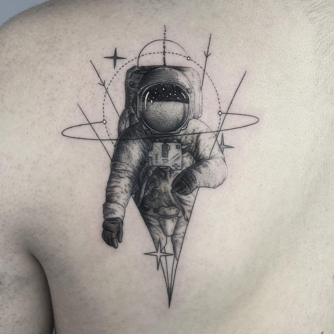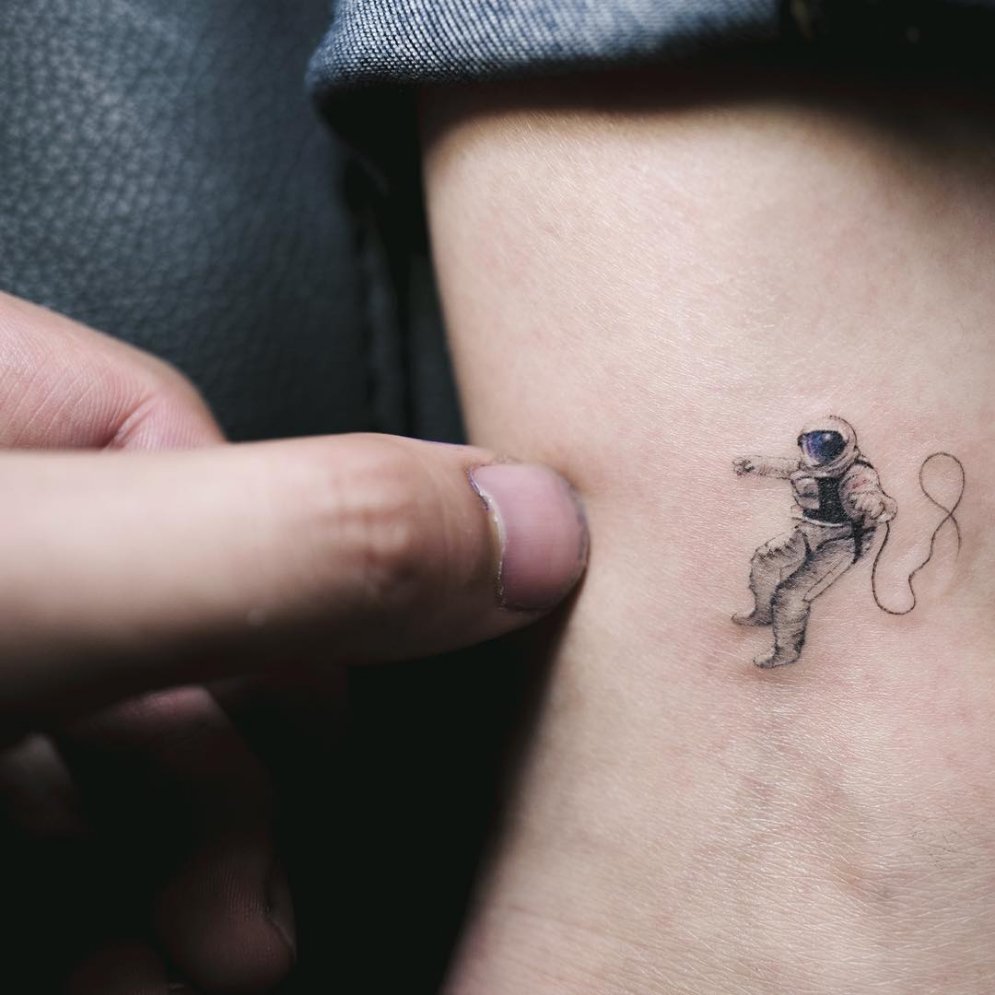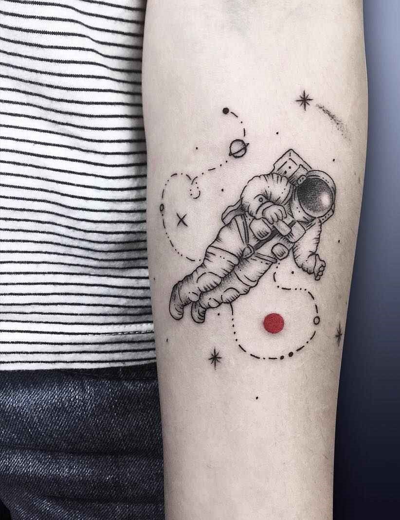 Одним з привабливих варіантів тату є малюнок у вигляді космонавта або астронавта.