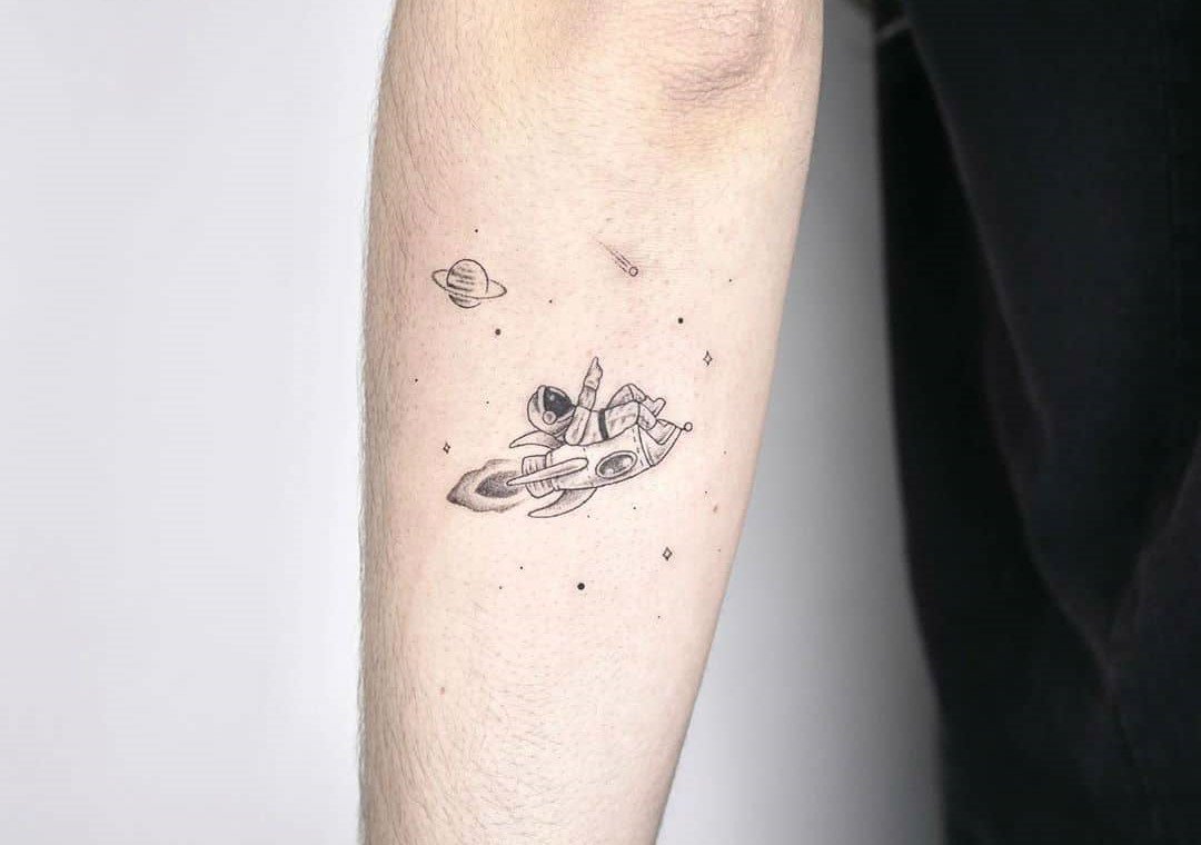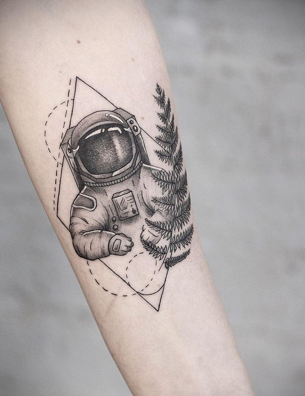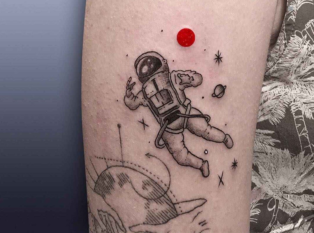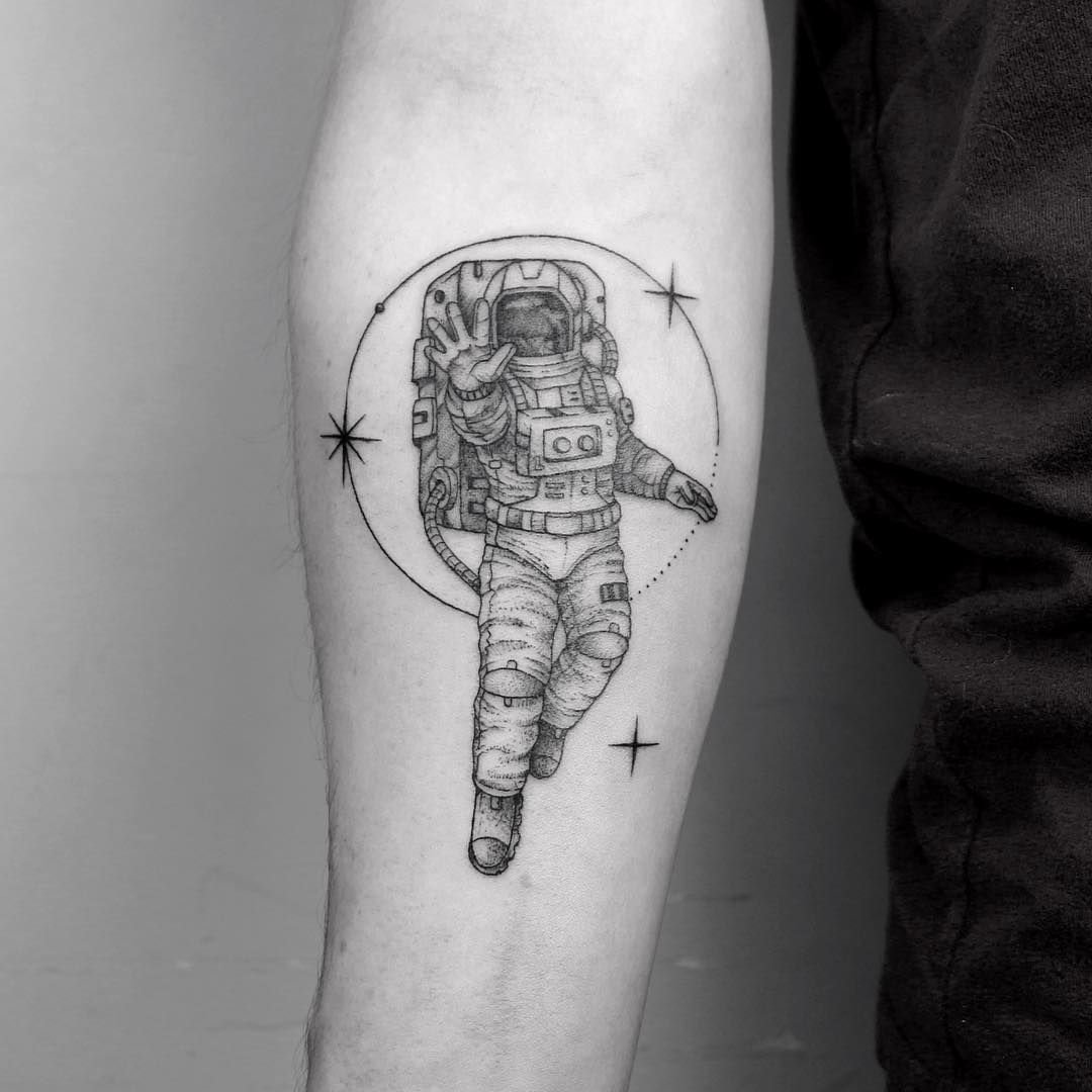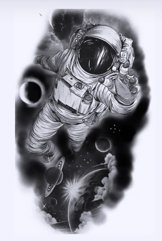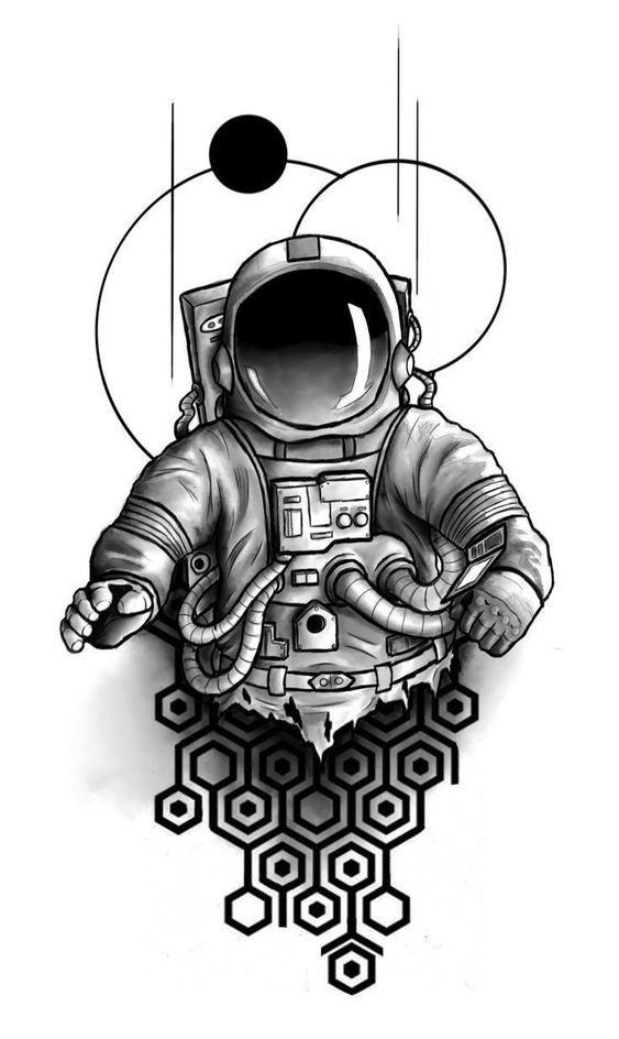 Одним з привабливих варіантів тату є малюнок у вигляді космонавта або астронавта.
