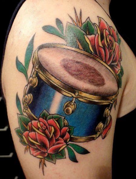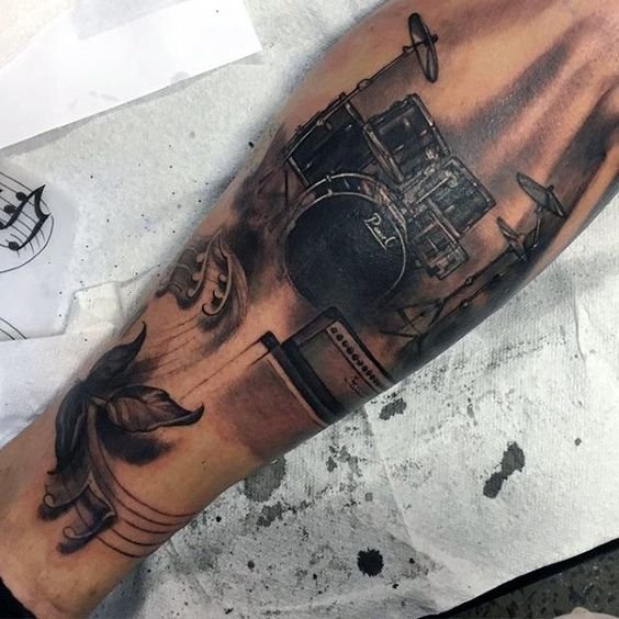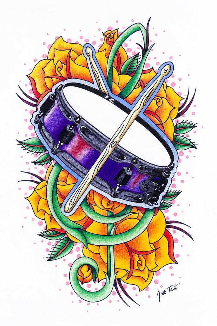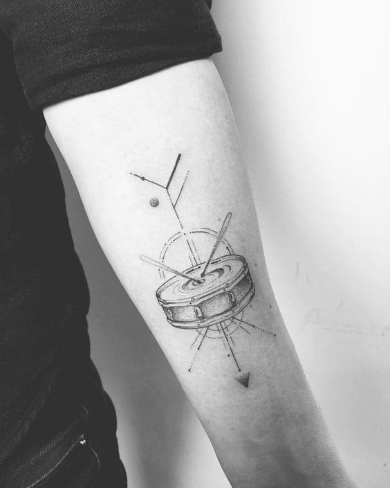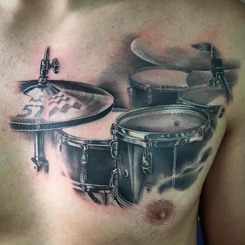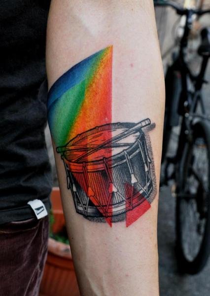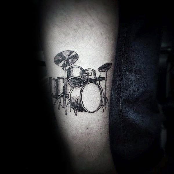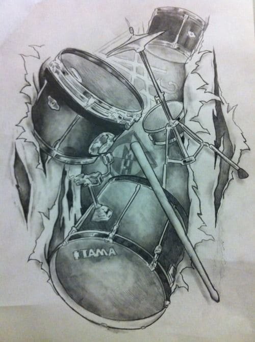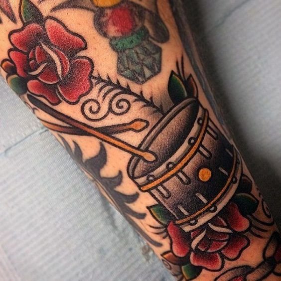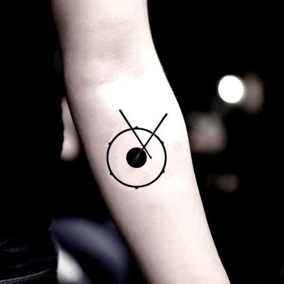 Тобто, зустріти барабанщика з елементом ударної установки, виконаним у вигляді тату можна досить часто. У цьому випадку, крім зазначених містичних властивостей, позначається захоплення музикою та робота в обраному напрямку.