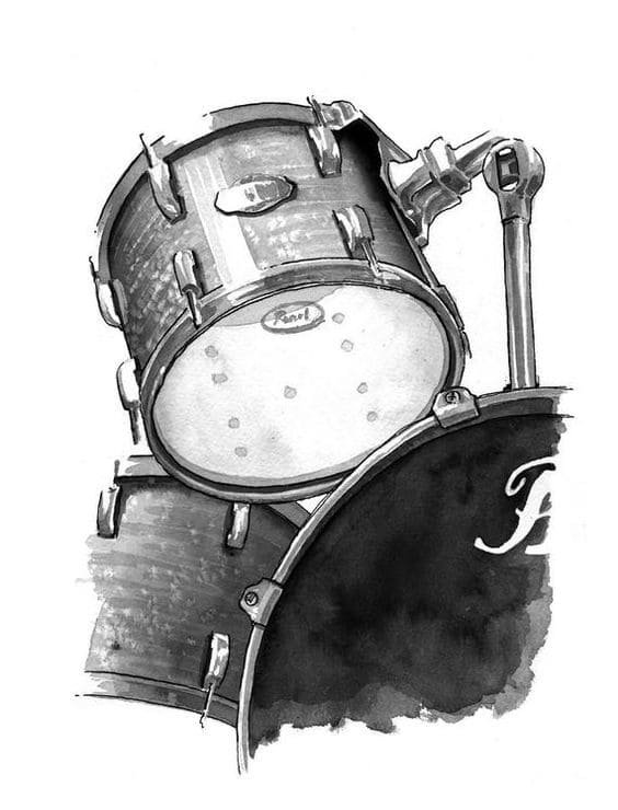 Яким може бути ескіз барабана? Це не обов'язково реалізм, де буде виключно сам інструмент. Його можна виконати в яскравих та не властивих йому кольорах, додати риси обличчя людини або інші характеристики.