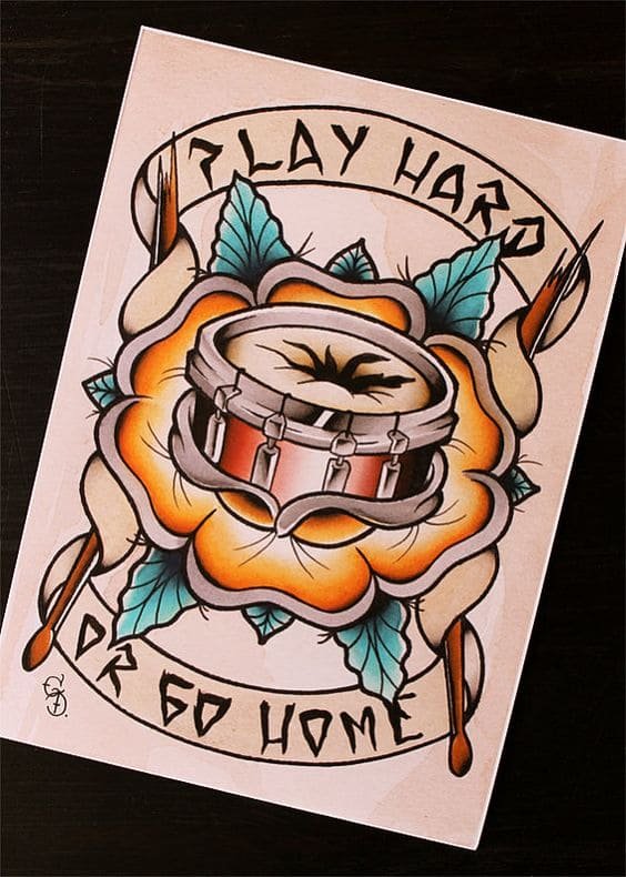 Ще барабан можна назвати ритмом життя. Він диктує крок на марші, вказує ритм на кораблі з веслами, скликає спільність в будь-яку епоху. Так що людина з таким тату прагне йти до перемоги, спрямована вперед, непохитна та серйозна в поставлених цілях.