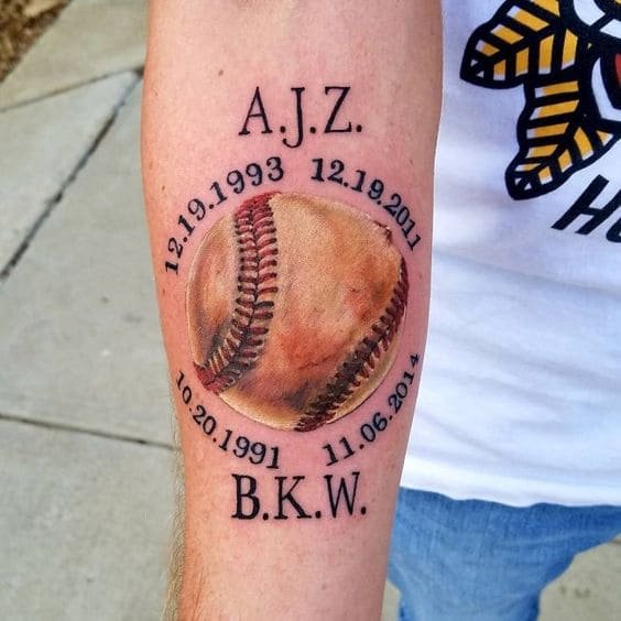 Татуювання може бути виконане в стилі завмерлого кадру, розповідаючи про якийсь конкретний знаменний момент у світі бейсболу. Також це може бути дата з ім'ям або номером гравця, які будуть оточувати фірмовий знак команди.