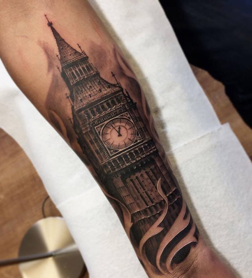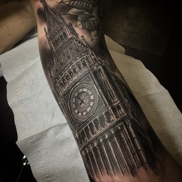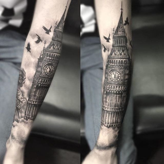 Татуювання за ескізом вежі Біг-Бен має безліч тлумачень, кожна з яких доповнює опис цього малюнка.