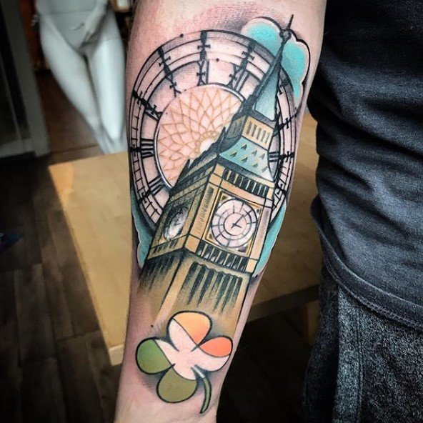 Для дівчат буде більш актуальним ескіз на нозі, руці або животі, де він буде помітний. Розміри Ви обираєте самі, виходячи з розміру фрагмента шкіри, що виділяється під тату. Це буде витончена робота, максимально красива та яскрава. Палітра може бути реалістичною, підкреслюючи оригінальні відмінності дзвіниці, щоб врахувати її особливості та споглядати роботу, яка цілковито відбиває реальну споруду. Така робота буде доречна як раз для мандрівників, для яких це буде приємним спогадом. Яскрава ж палітра буде доречна для веселих, сміливих та життєрадісних людей, які готові до експериментів. Звичайно ж, спочатку можна підготувати ескіз Біг-Бен, це дозволить підкоригувати замальовку до перенесення на шкіру. Вибір кольорів та відтінків може зіграти вирішальну роль, оскільки саме він акцентує увагу на тату. Зміна кольорів ніяк не скажеться на сенс та значення татуювання.