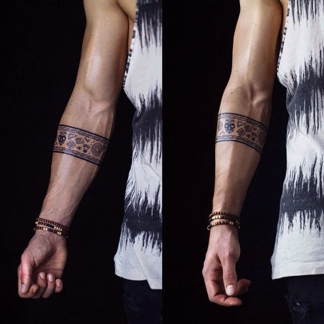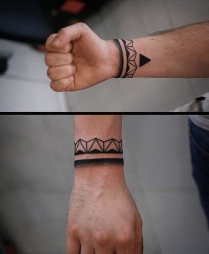 Чоловіча половина надає перевагу зображенням геометричних фігур, або кельтські візерунки, які надають впевненість та силу власникові зображення. Серед чоловіків рідко зустрічаються тату просто браслета. Зазвичай зображення далі продовжують у рукав, у масштабну роботу від зап'ястя до плеча.