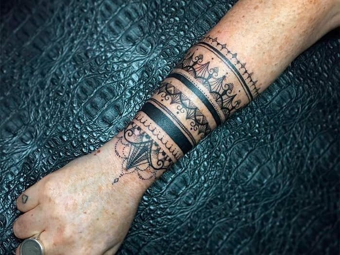 Тату браслета може бути найрізноманітнішим, різної форми та масштабу. Це може бути як широка, так і витончена тонка прикраса, невеликого розміру браслет, або плавно перетікати у рукав. Все залежить від побажань самого клієнта.