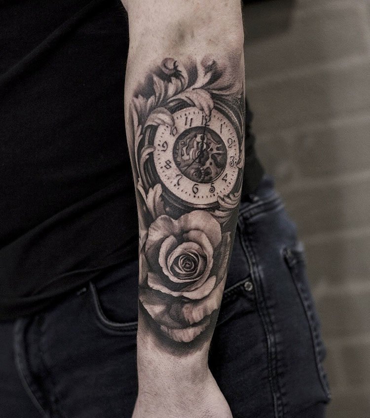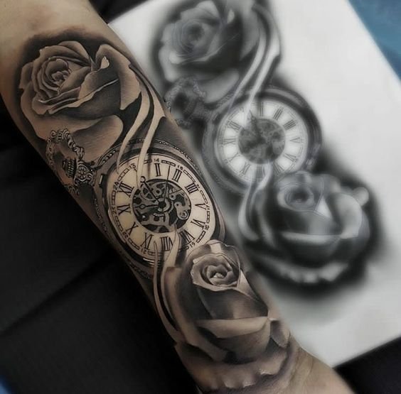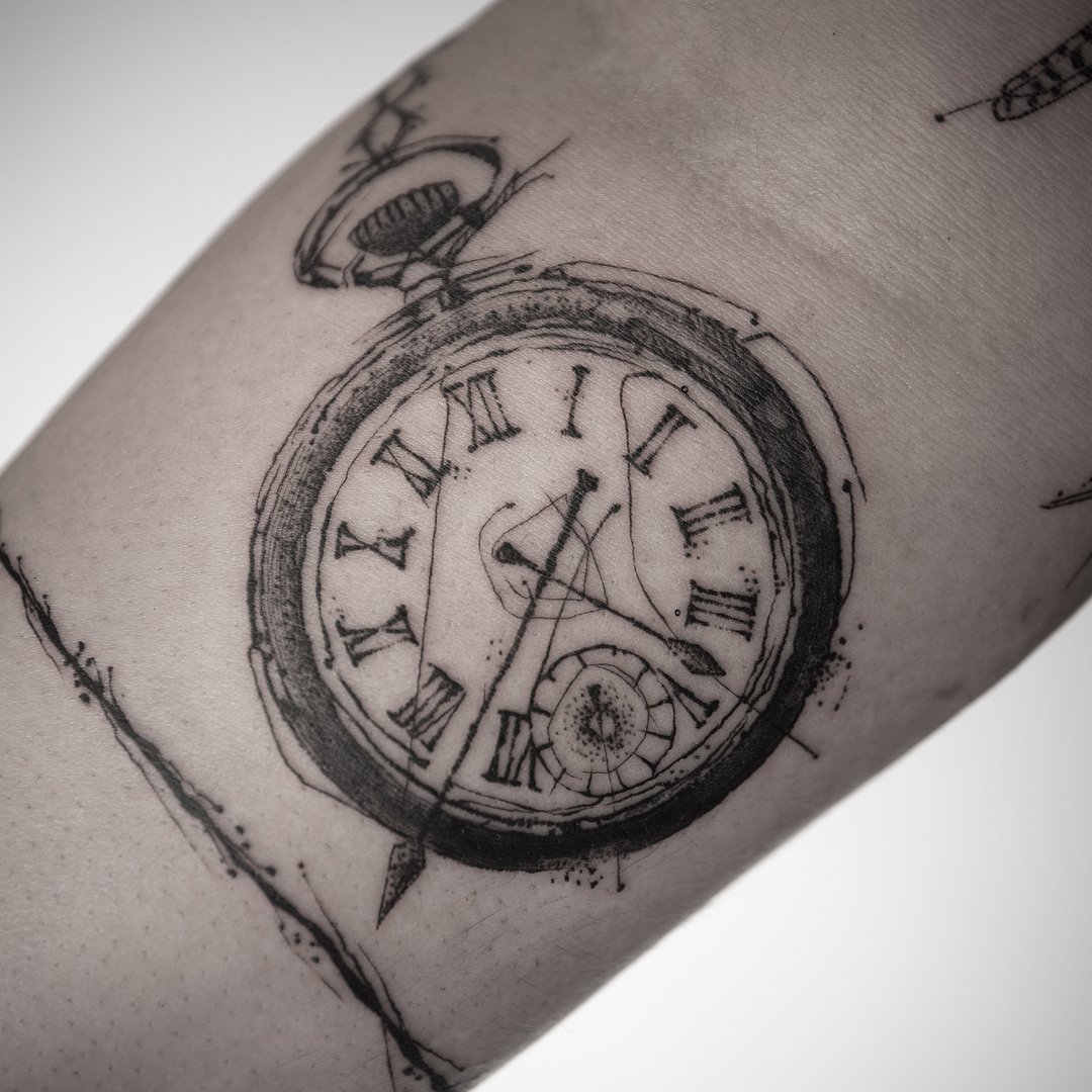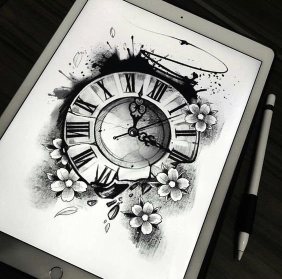 Серед маси популярних татуювань мають широкий попит ескізи з годинником.