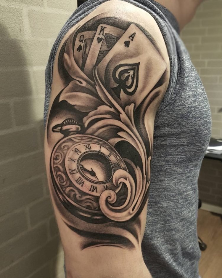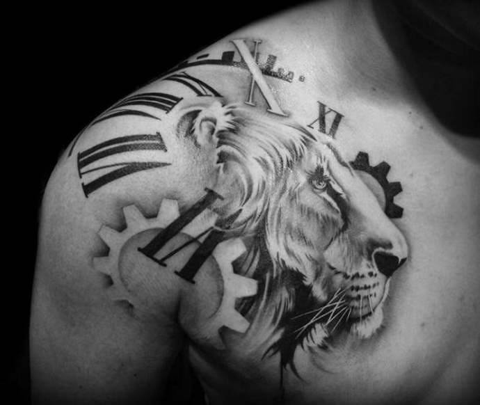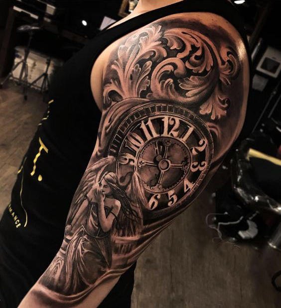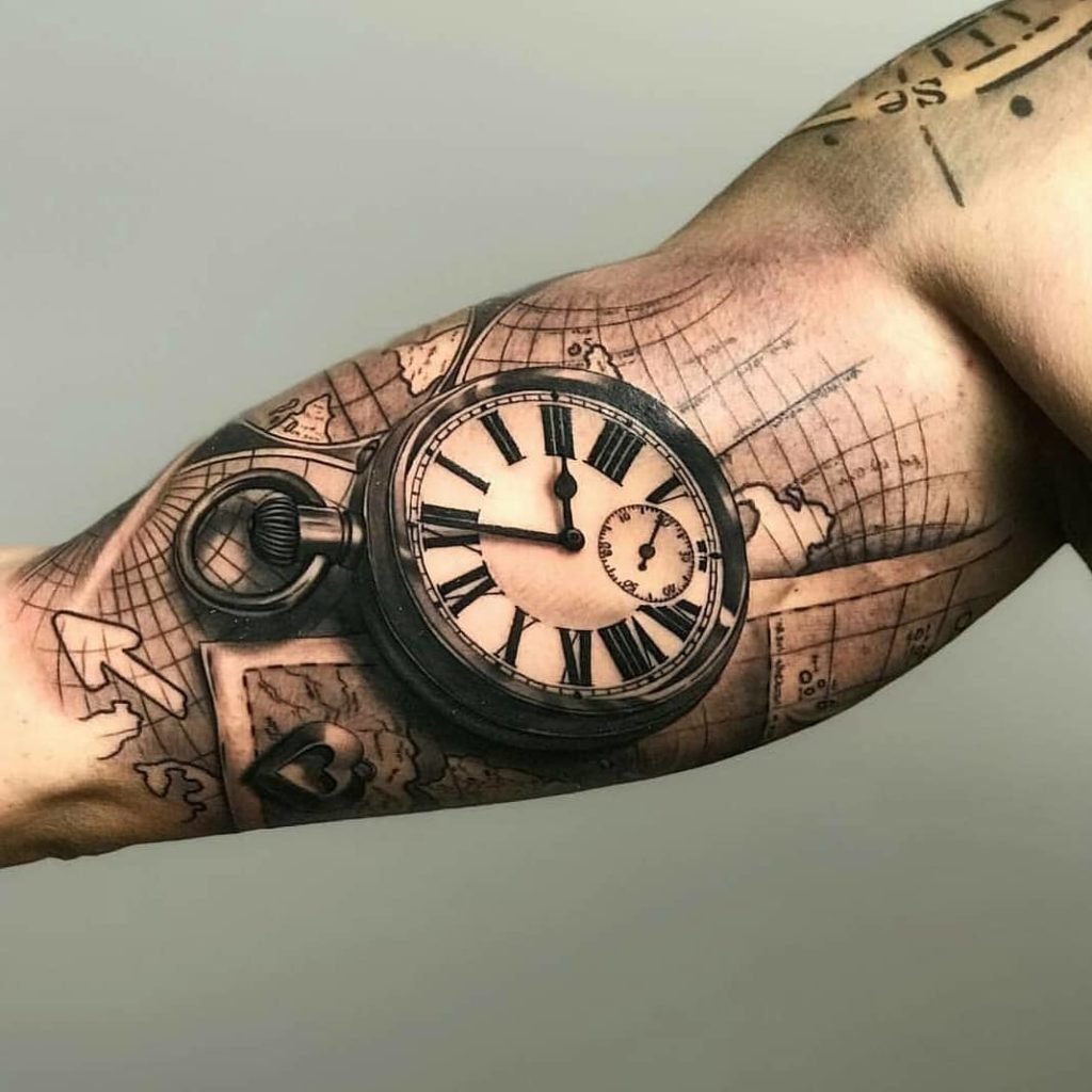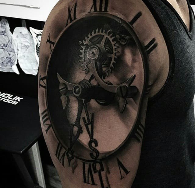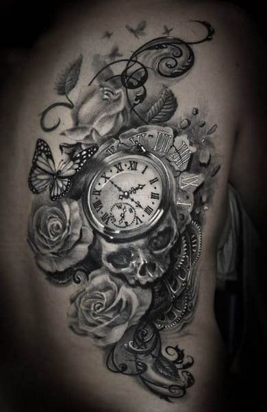Часто саме таке зображення вибирають філософи, мандрівники або поети. Як правило, чоловіки, які вибирають тату з годинником - не сидять на місці, вони точно знають чого хочуть і йдуть до своєї мети. Такі особистості безстрашні та вперті, але що стосується відносин - такі люди досить складно сходяться з іншими людьми, але якщо вже союз побудований, то від такої людини Ви отримаєте відданість і надійне плече. Якщо на чоловікові татуювання зі складним механізмом годин, зображення говорить про його педантичність й про те, що людина приймає життя таким, яким воно є: з безліччю граней та деталей.