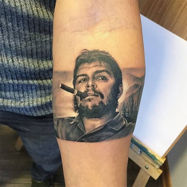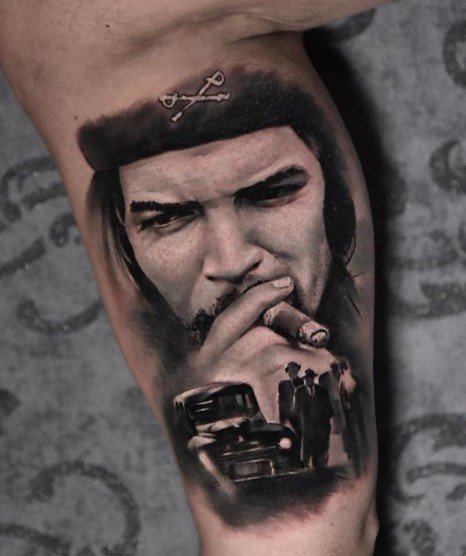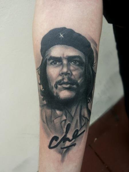Тату-ескіз Че Гевари найкраще виглядає в стилі реалізм. Відносно унікальності тату, можна вибрати будь-яке фото Ернесто, адже вибір не обмежений лише одним, всім відомим портретом. На багатьох зображеннях зустрічаються так само відомі фрази команданте.