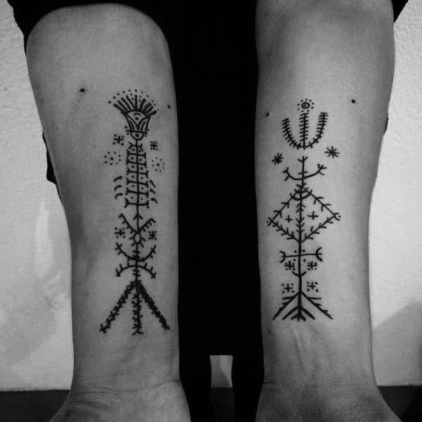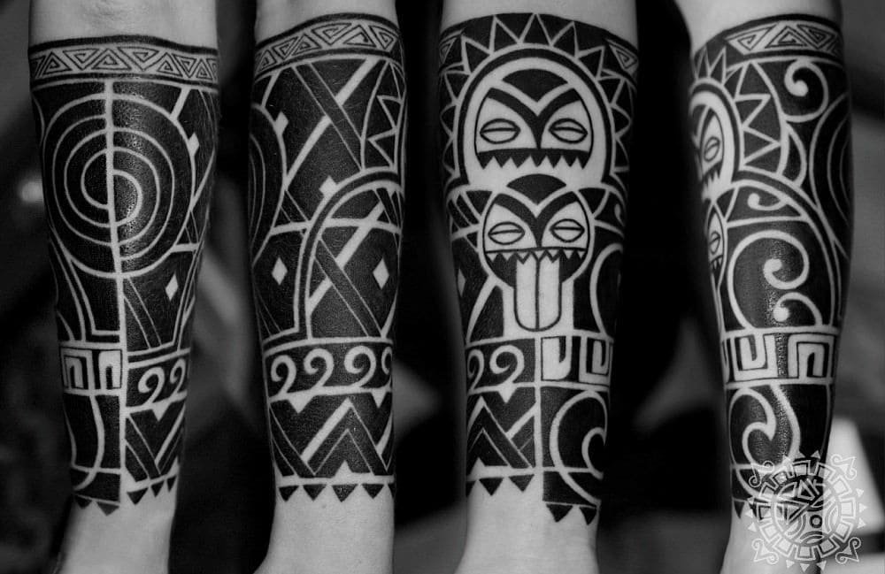 Етнічні татуювання в обов'язкової мірою повинні бути симетричні. Але не варто забувати та про смислове посилання малюнка. Наприклад, зображення місяця на плечі було уособленням жіночності, акула виступала символом влади, малюнок хреста трактувався вічністю, зображення ворона попереджало людей про небезпеку.