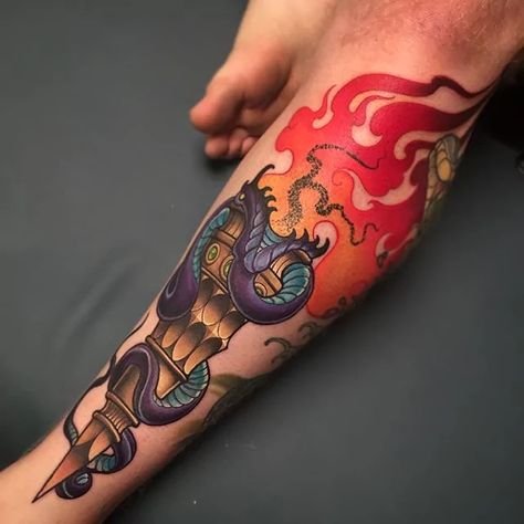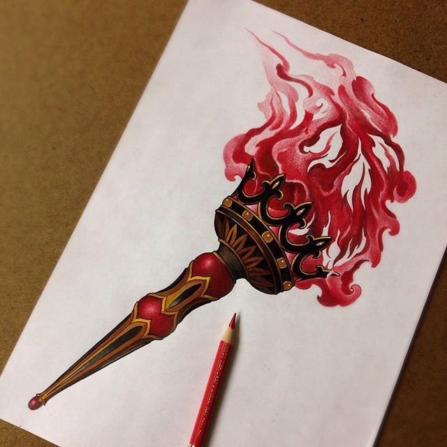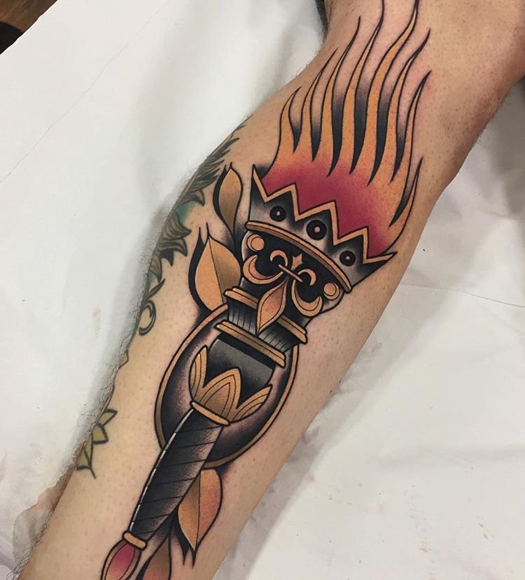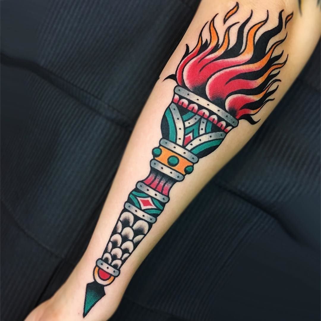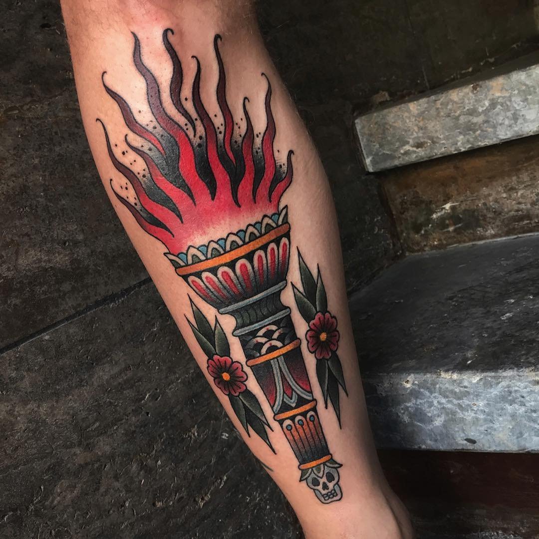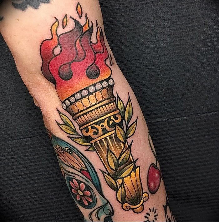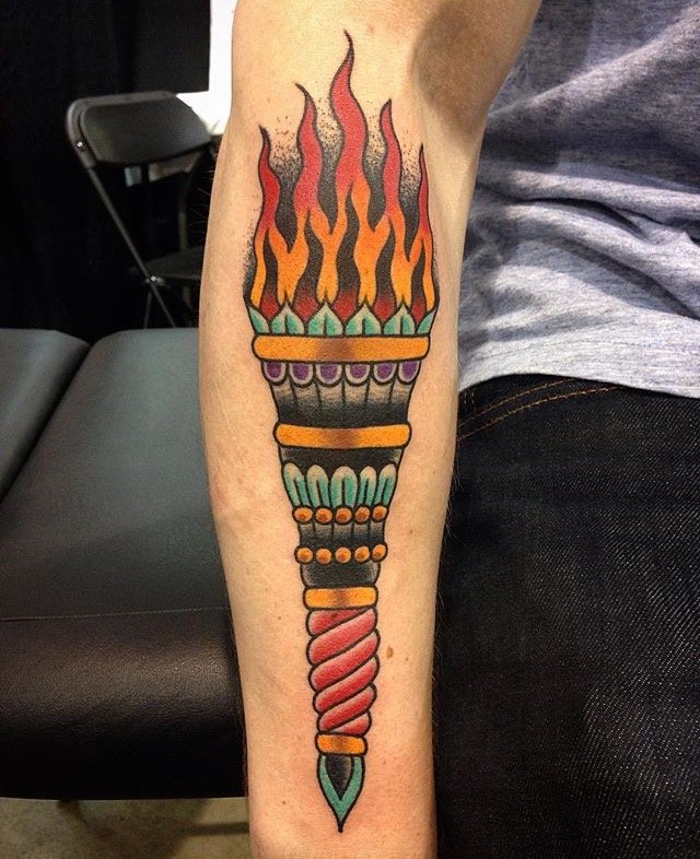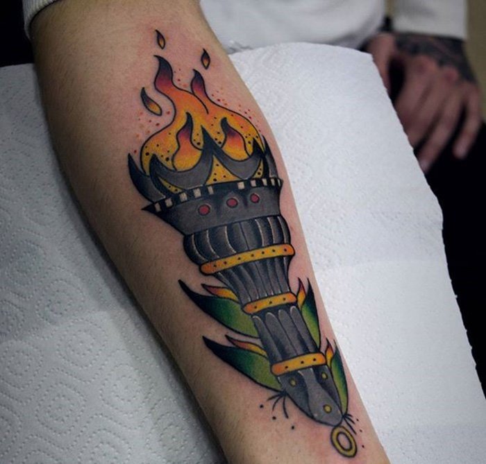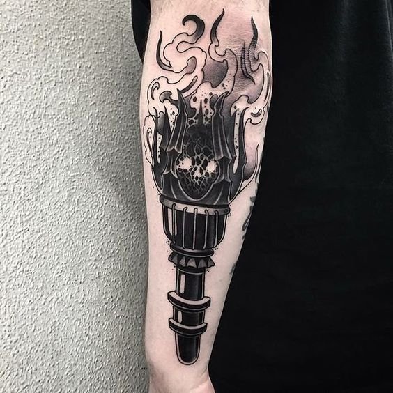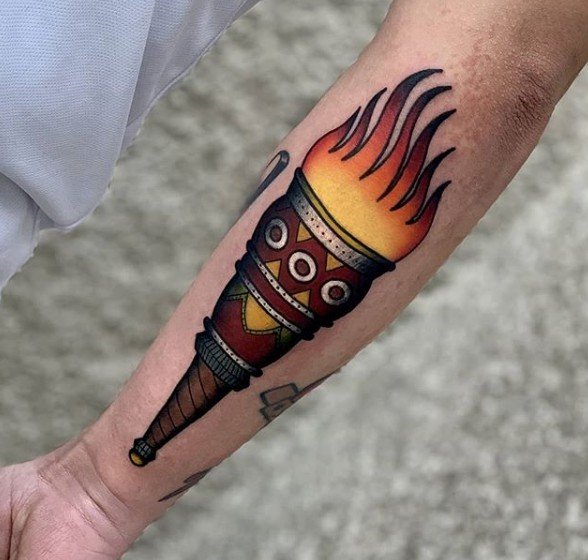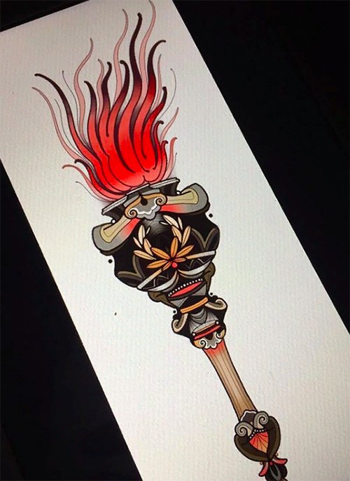 Дане тату має великий попит вже багато років, адже ще з давніх часів люди вірили що зображення смолоскипа, що палає, має позитивну характеристику.