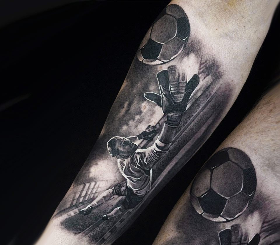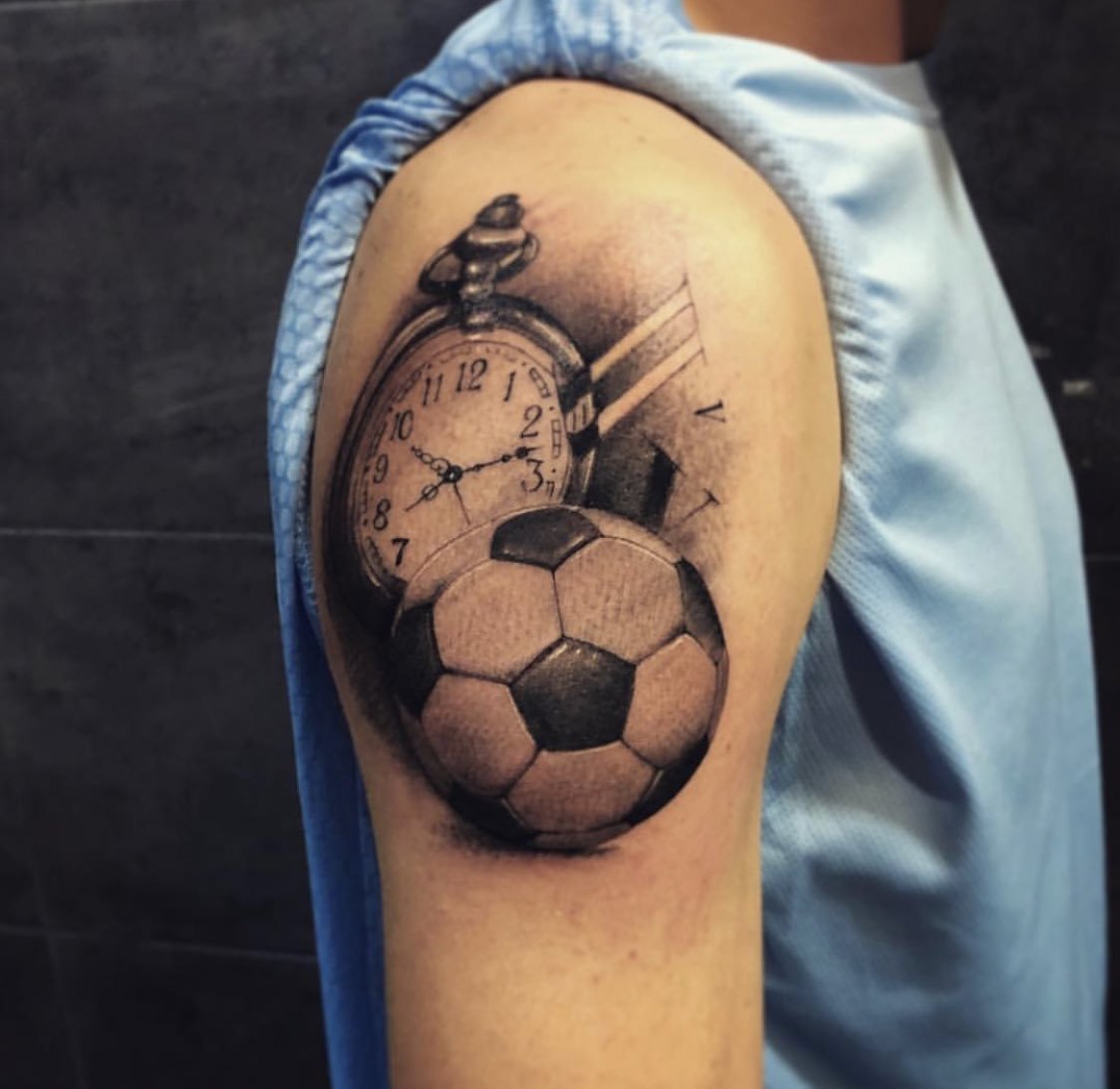 Татуювання футболу вибір безсумнівно чоловіків, адже тільки справжні та віддані фанати цього виду спорту наносять його на тіло.