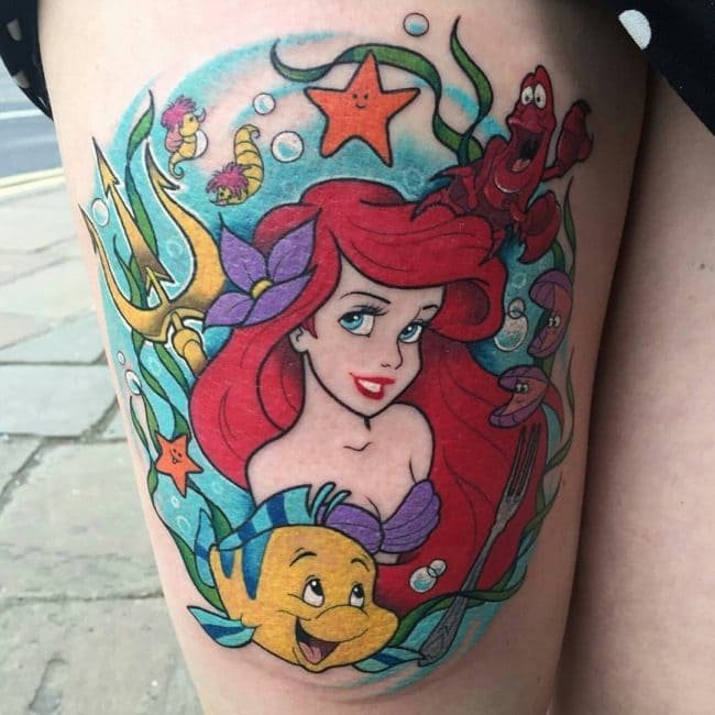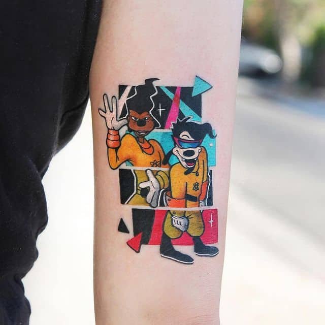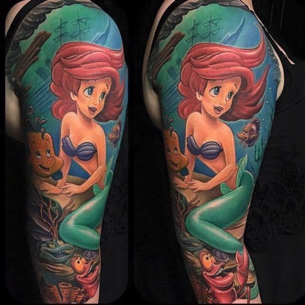 Мультиплікаційна тематика дуже популярна у сфері художнього татуювання, адже вибір цікавих персонажів великий, будь-яка людина зможе підібрати для себе відповідний ескіз з героєм мультфільму, і зобразити його в будь-якому улюбленому стилі.