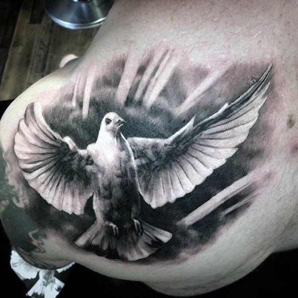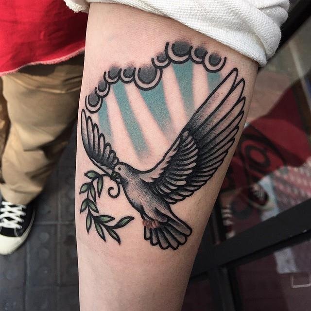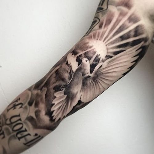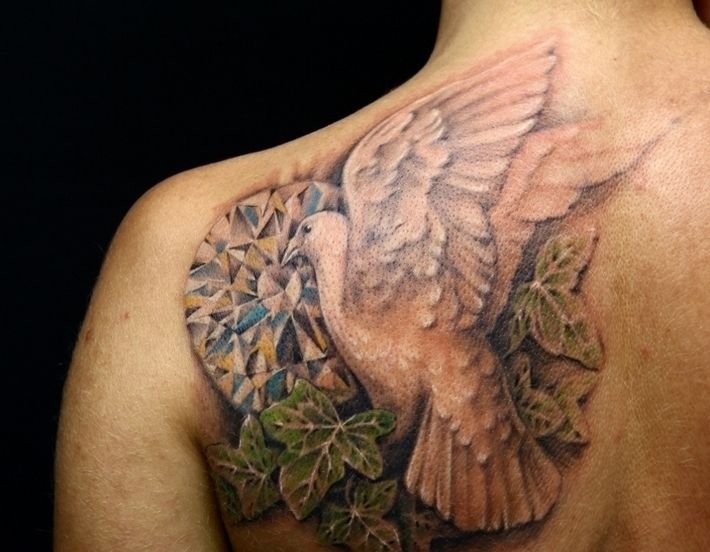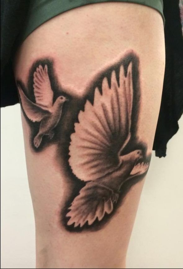 Оригінально та красиво голуб буде в будь-якому виконуваному стилі, хоч це буде реалізм, блекворк, або треш-полька. Голуб прекрасно поєднується з різними доповненнями: квіти, стрічки, написи та багато іншого. Зображення голуба можна здійснювати в будь-яких колірних відтінках. Ви самі можете створити ескіз, який буде Вам до душі та наділити його особливим значенням.