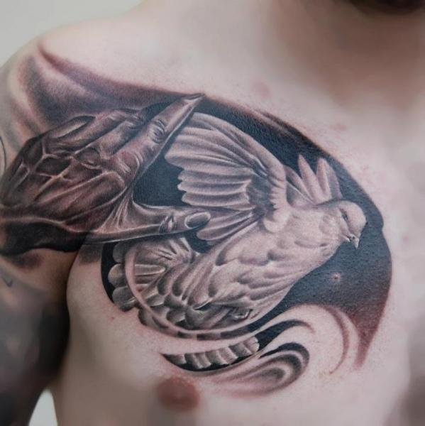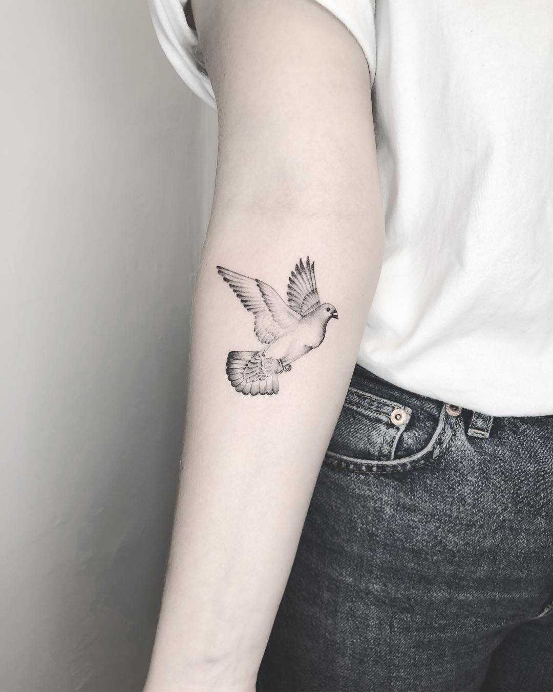 Тому татуювання з голубом несе в собі кілька трактувань. Як правило, голуб часто виступає добрим знаком, знаком благодаті, дане значення відомо безлічі культур. Особливо популярні тату із зображенням голуба в країнах християнської релігії, адже для них голуб означає цнотливість та світ, є уособленням Святого Духа.