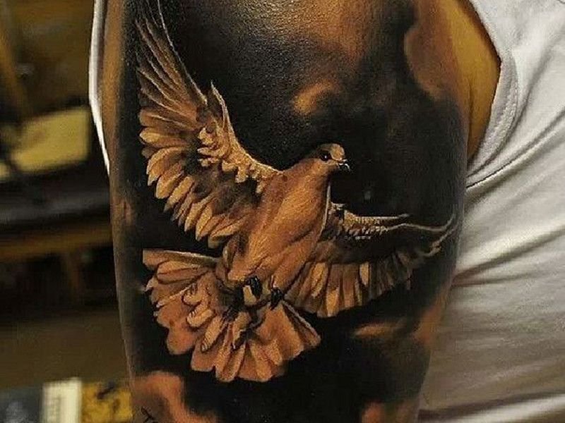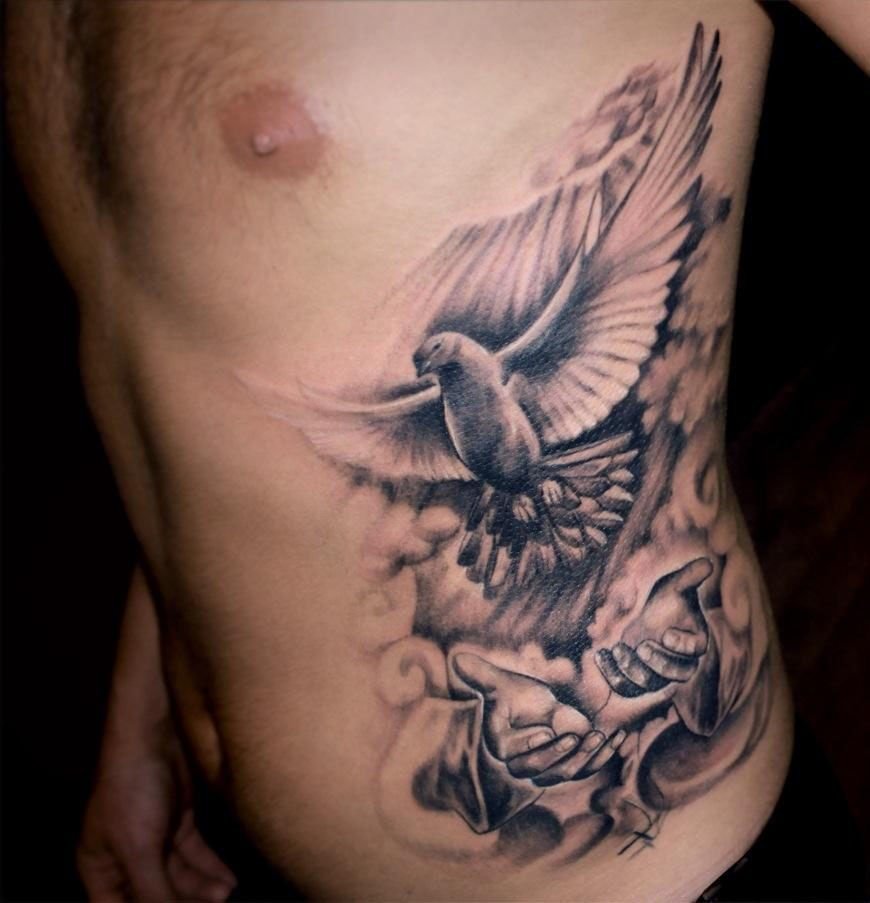 - Голуб в польоті, як правило, означає незалежність та свободу. Оскільки татуювання голуба є універсальним, голуб однаково красивий має вигляд як на чоловічому, так і на жіночому тілі. Голуба можна зображувати на будь-яких ділянках тіла, в будь-якому випадку зображення буде мати ефектний вигляд.