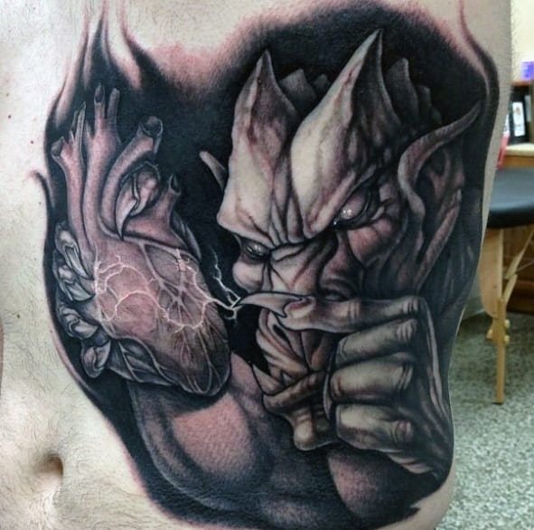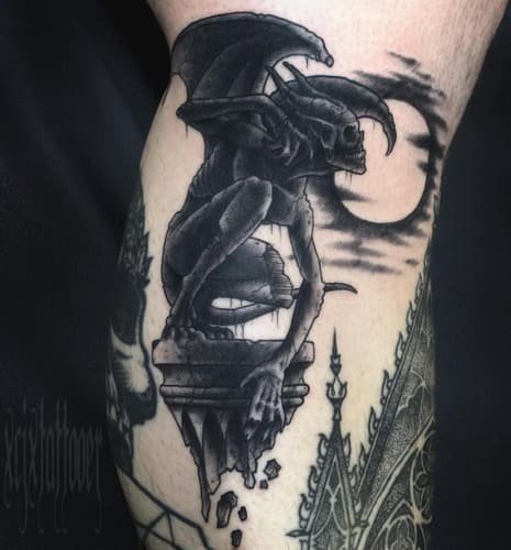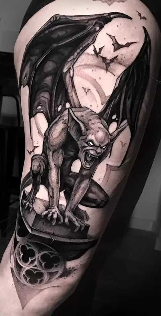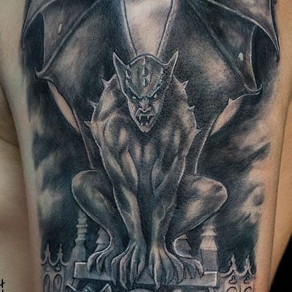 - Тату горгулі ще може бути знаком нічного життя людини, адже як відомо, міфічні створіння живуть лише в нічний час доби.