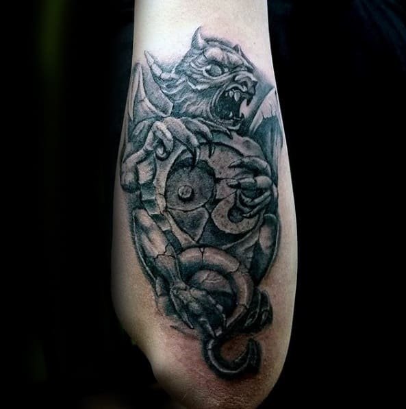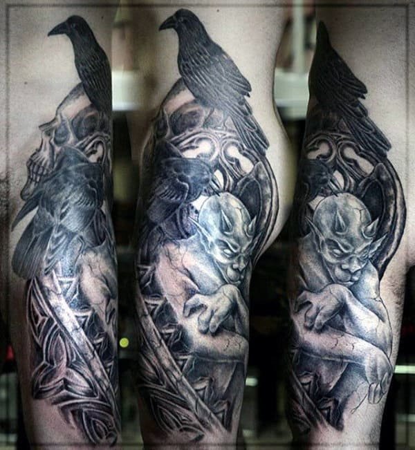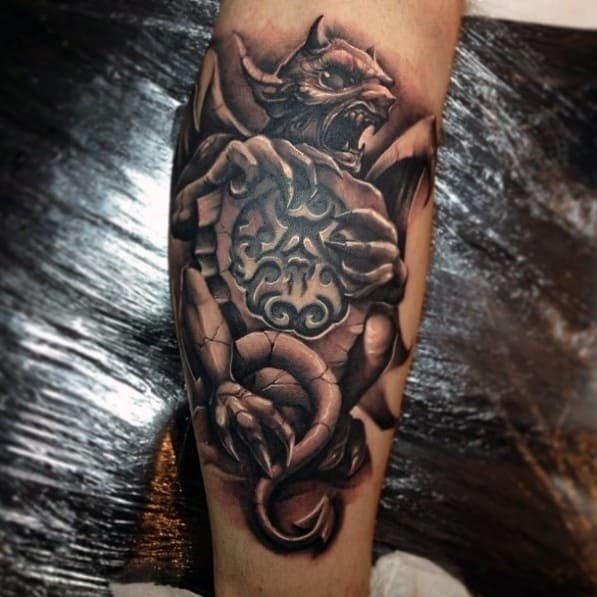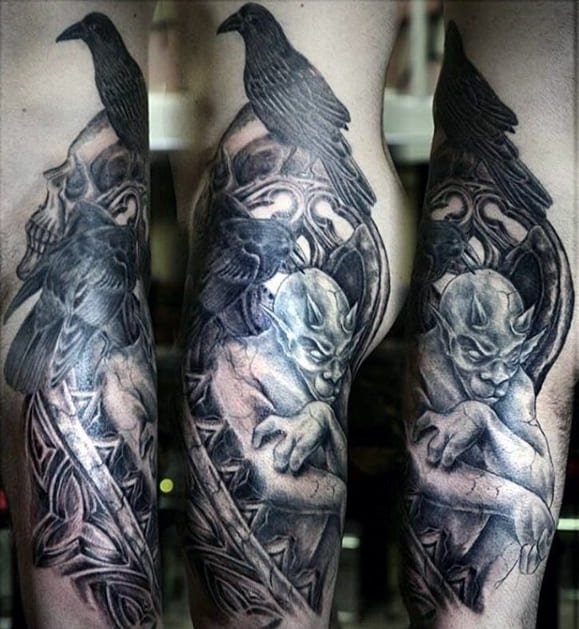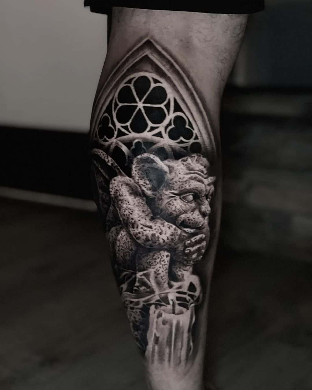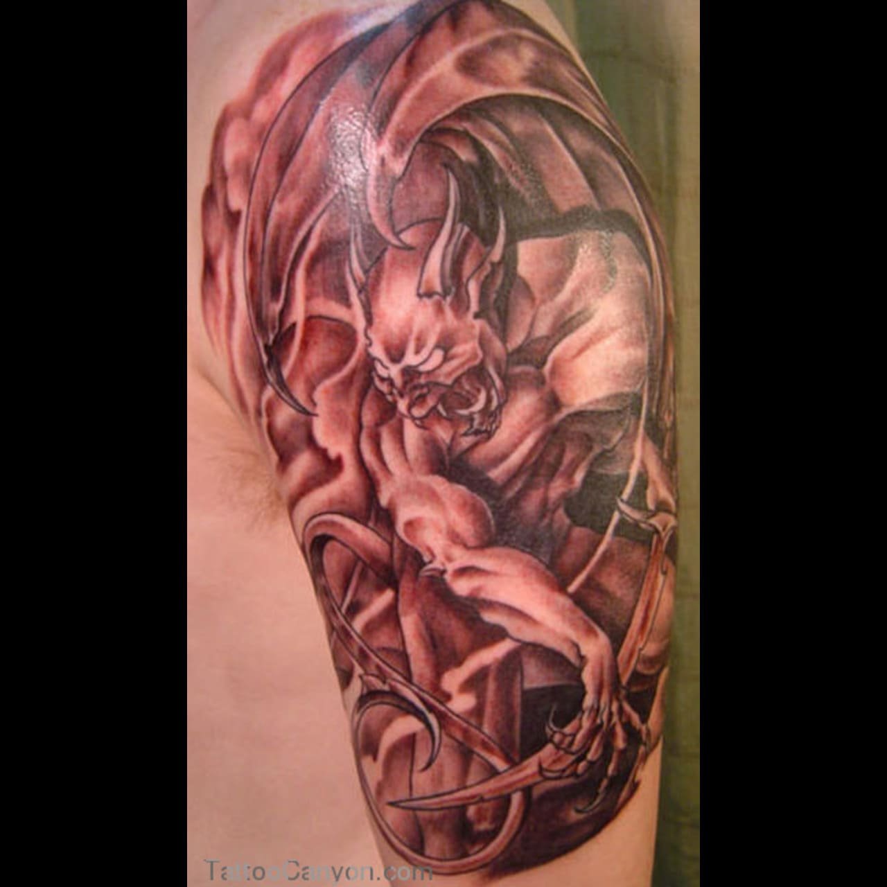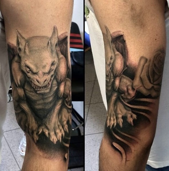 Міфічні істоти часто стають ідеєю для тату-ескізів, і до того ж, мають широкий попит. Існують різні створіння: посланці добра та справедливості, а є й ті, що наводять жах на людей однією лише згадкою про них. Але є й третій вид істот з міфології, які перейшли на світлу сторону, і такими істотами є горгулі. На вигляд, вони схожі на страхітливого дракона, скульптурами з їх зображеннями було заведено прикрашати собори. Найвідомішою будівлею, яку охороняють маса таких скульптур, це Собор Паризької Богоматері.