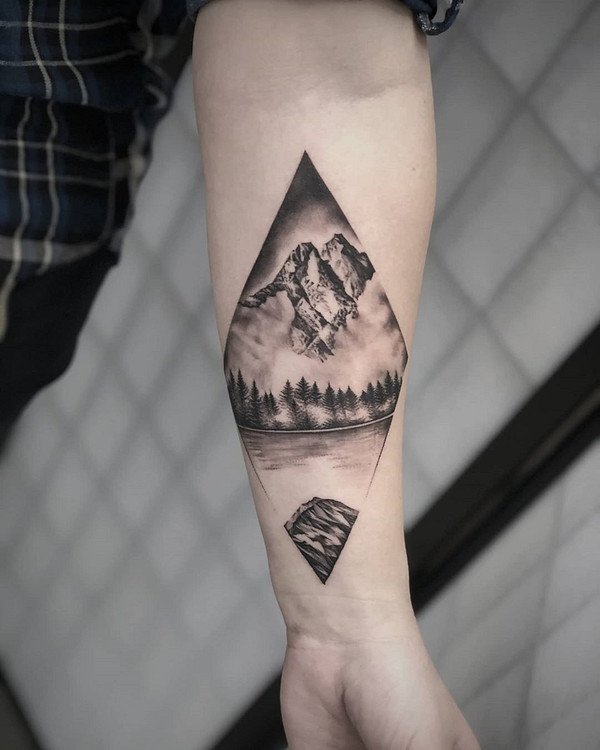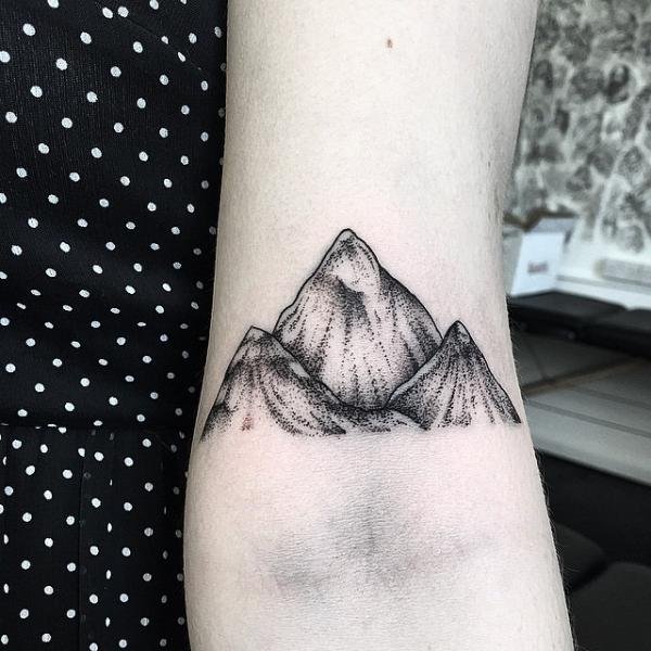Гори - надзвичайна краса, недоступність, велич. Всі часи люди милуються красою гір із захопленням. Великі майстри часто зображують велич гір на полотні, демонструючи їх нерухому та неосяжну силу. Тож не дивно, що і в мистецтві тату гори мають величезний попит. Часто тату із зображенням гір пов'язують з магічним трактуванням. Це пов'язано з тим, що в стародавні часи люди вірили, що в горах живуть боги, а також істоти з неземною силою. Значення татуювання гори безпосередньо пов'язано з самим сюжетом зображення, кольоровою гамою та видом вершин. Вибираючи зображення, людина обирає той варіант, який більше прийшов до душі. Який підкреслює внутрішній світ та індивідуальність.