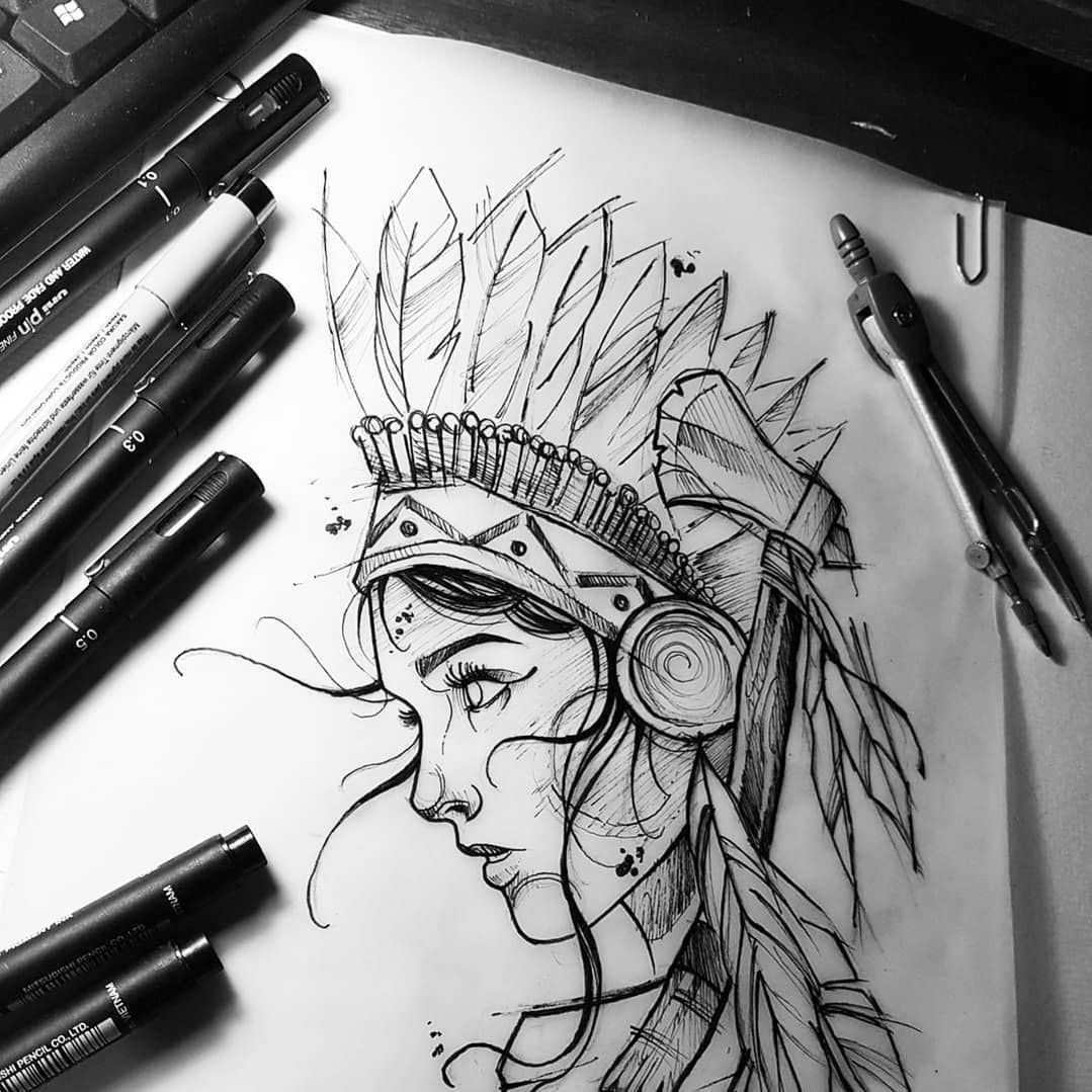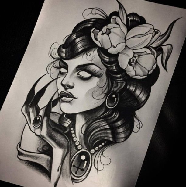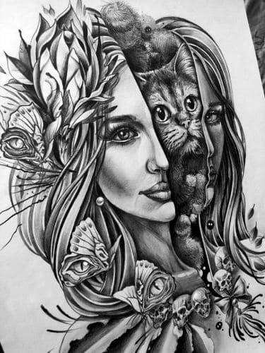Жінки, як правило, вибирають графічні ескізи із зображенням квітів, рослин, кішок. Досить часто в даних ескізах присутні елементи геометрії. Таке татуювання підкреслює творчу особистість, вразливість душі.