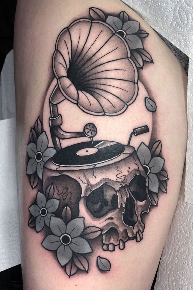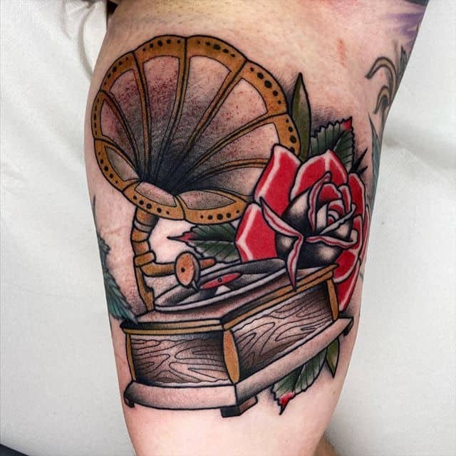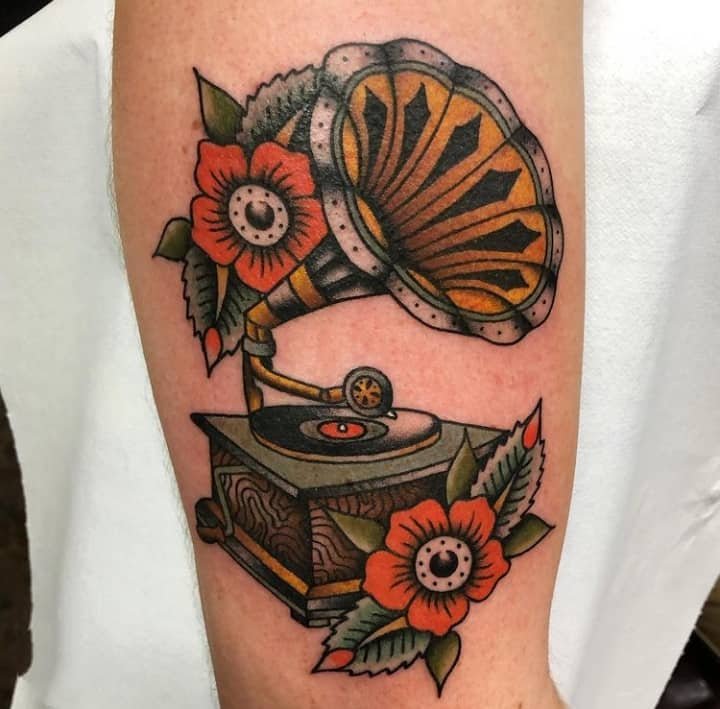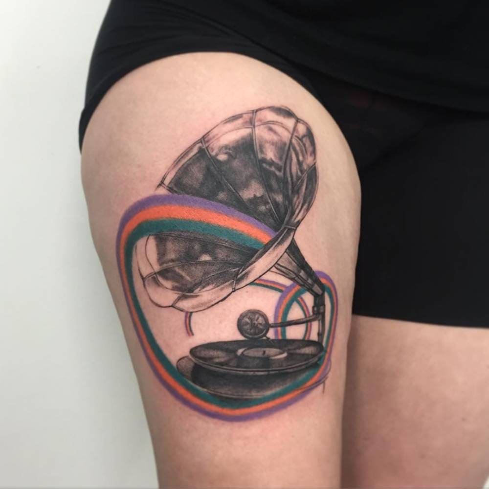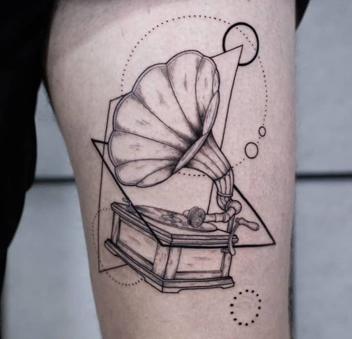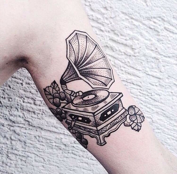 В даному випадку, тату грамофон буде демонструвати внутрішній світ людини, яка нанесла його собі на тіло. Він має всі риси старовинного класичного пристрою, що зараз модно та актуально.