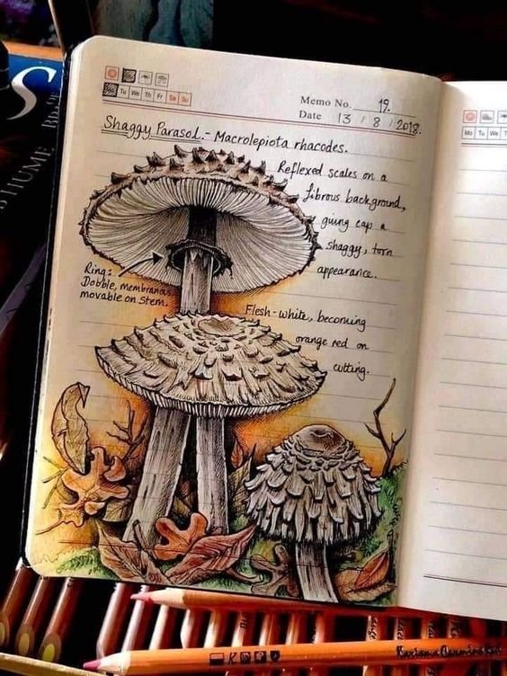 Любителі природи та ботаніки також можуть носити на собі ескіз гриба в будь-якому його виконанні.