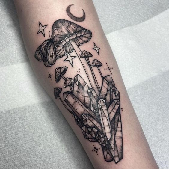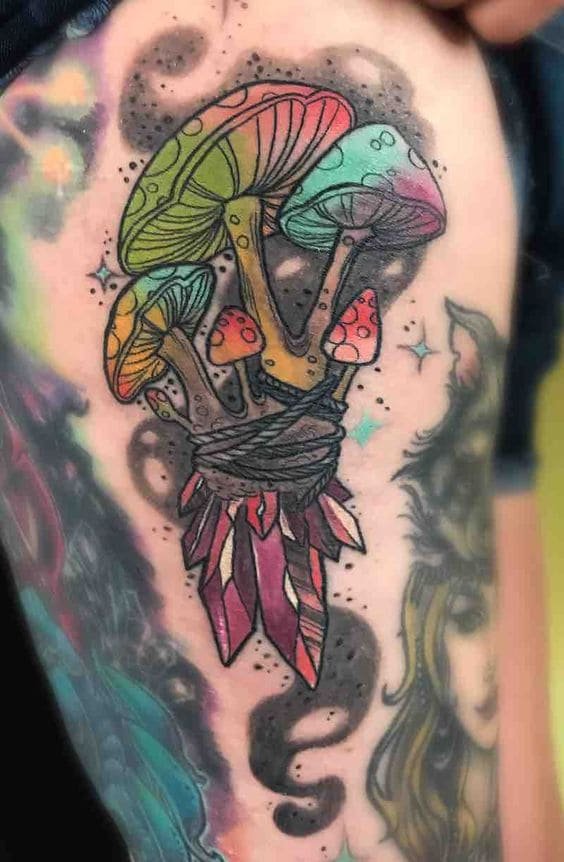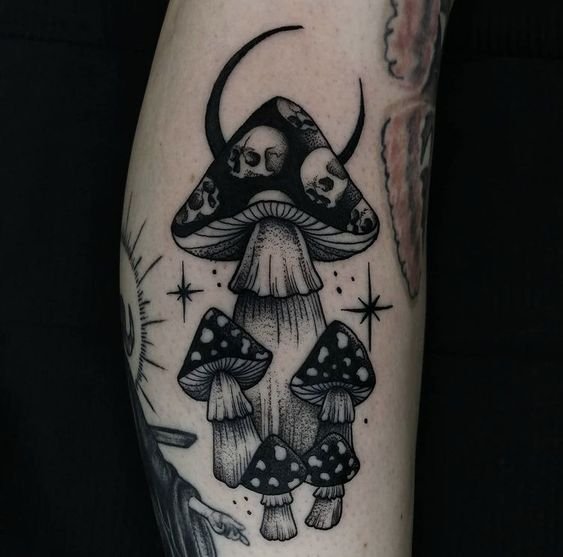 Ескіз гриб, перенесений на шкіру, також повинен наділити свого володаря удачею та процвітанням, завзятістю та наполегливістю. Все це дозволяє говорити про цю рослину, як про серйозний символ.