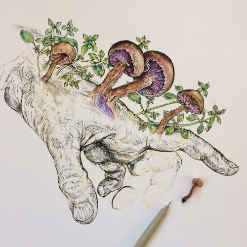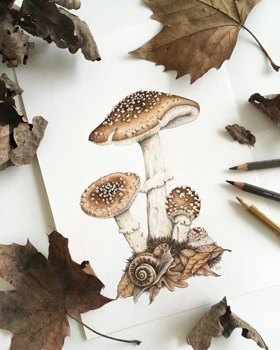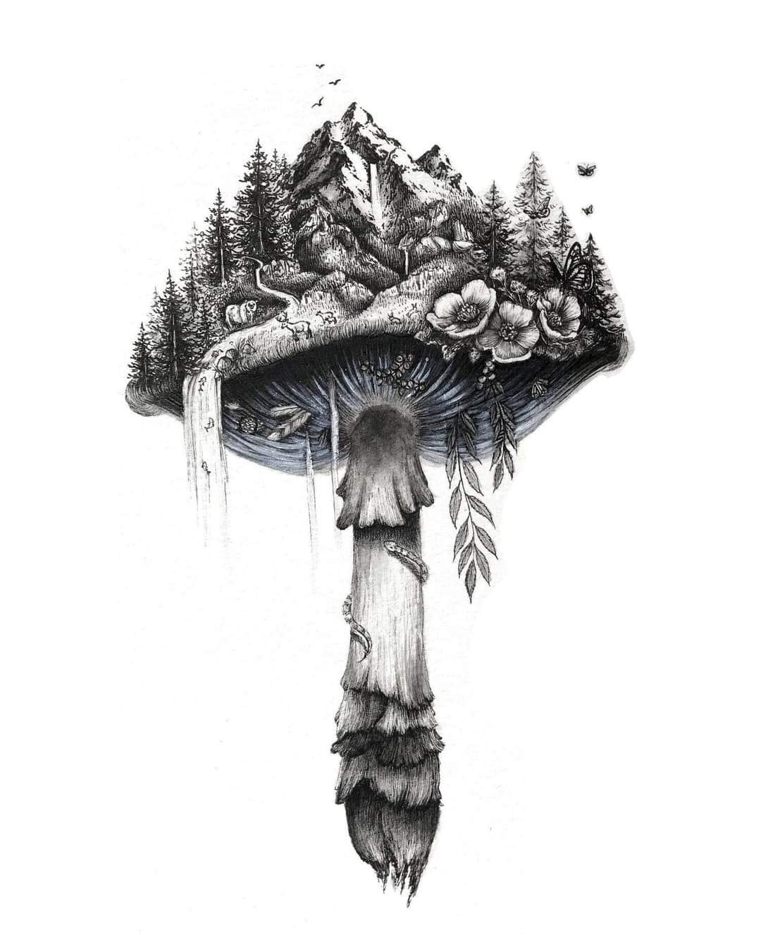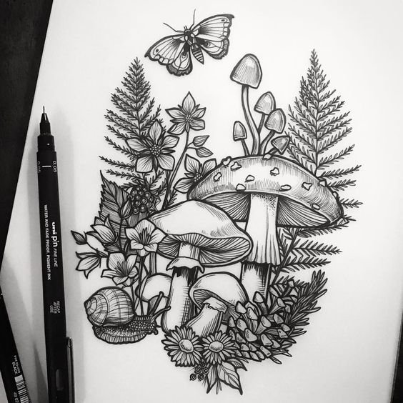 Любителі природи та ботаніки також можуть носити на собі ескіз гриба в будь-якому його виконанні.