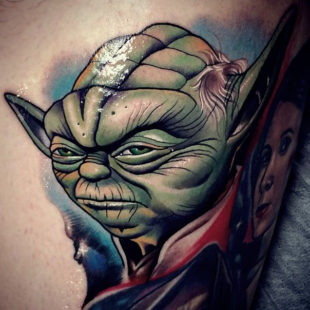 Людина, яка зробила замовлення на тату Йода, може бути просто його фанатом: улюблений персонаж з всесвіту кіно легко може перекочувати на шкіру, будь то рука або нога.