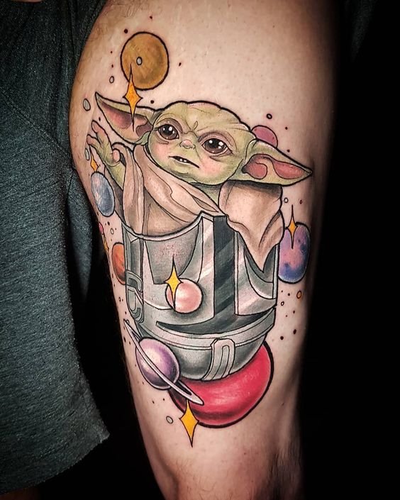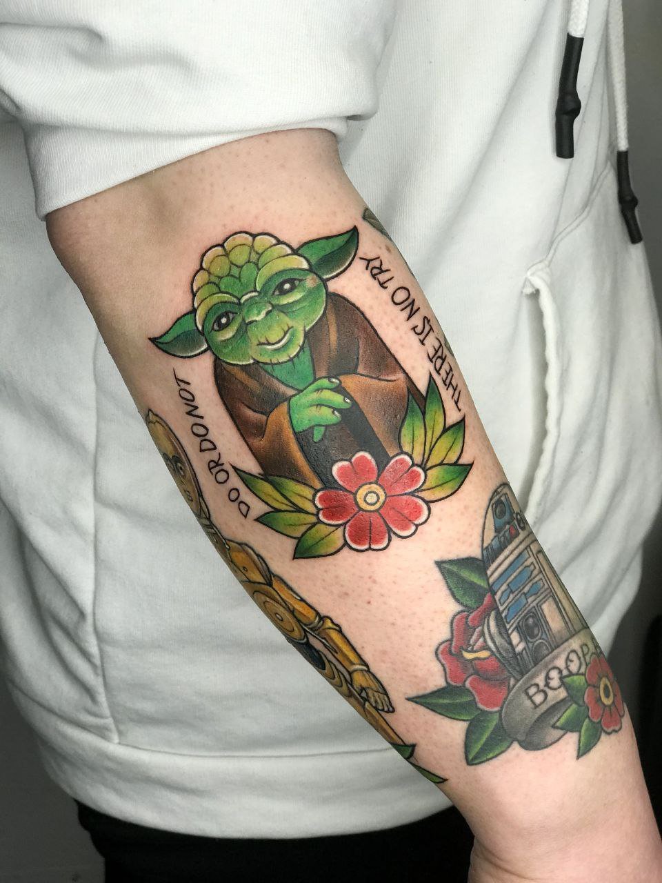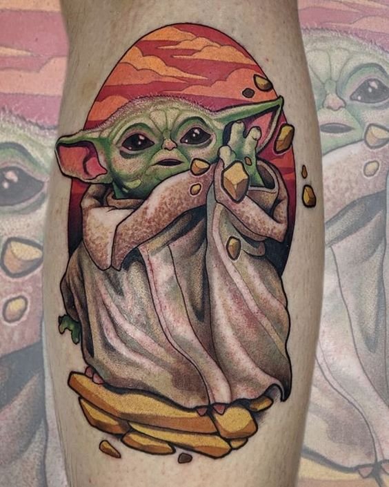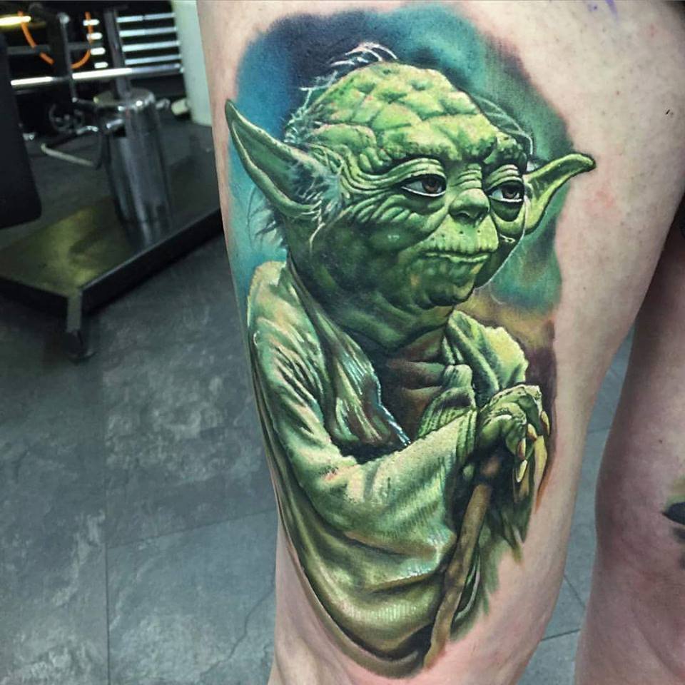 Людина, яка зробила замовлення на тату Йода, може бути просто його фанатом: улюблений персонаж з всесвіту кіно легко може перекочувати на шкіру, будь то рука або нога.