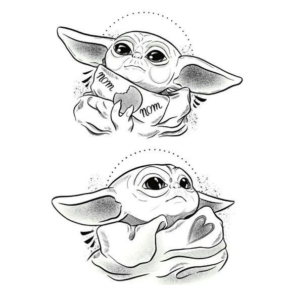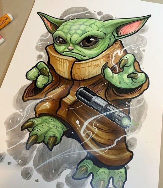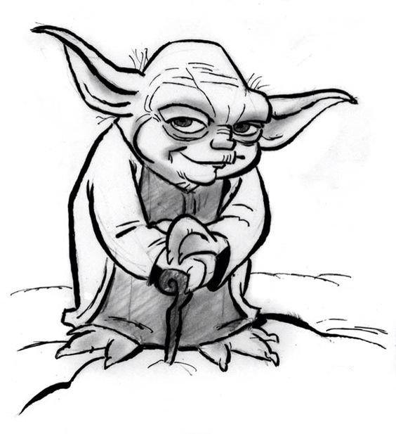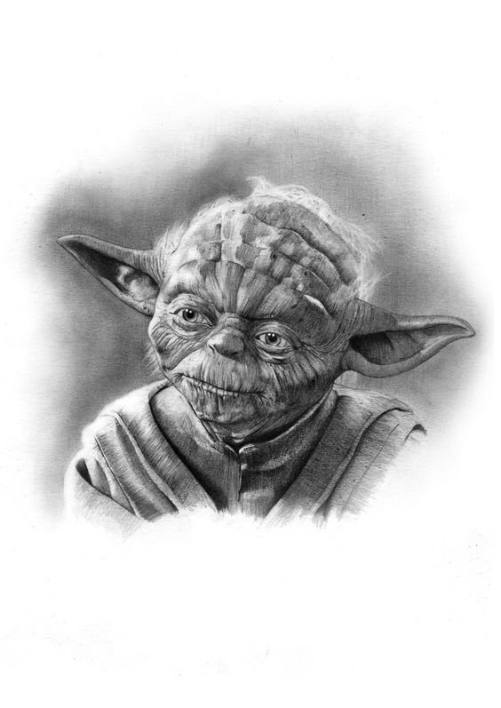 Іноді ескіз Йода зображується у стилі мультфільму про крокодила Гену й Чебурашку, що робить роботу ще цікавішою.