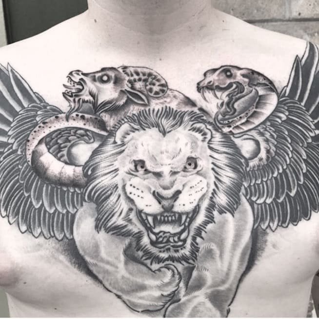 Тату із зображенням химери користуються популярністю як у чоловіків, так і у жінок.