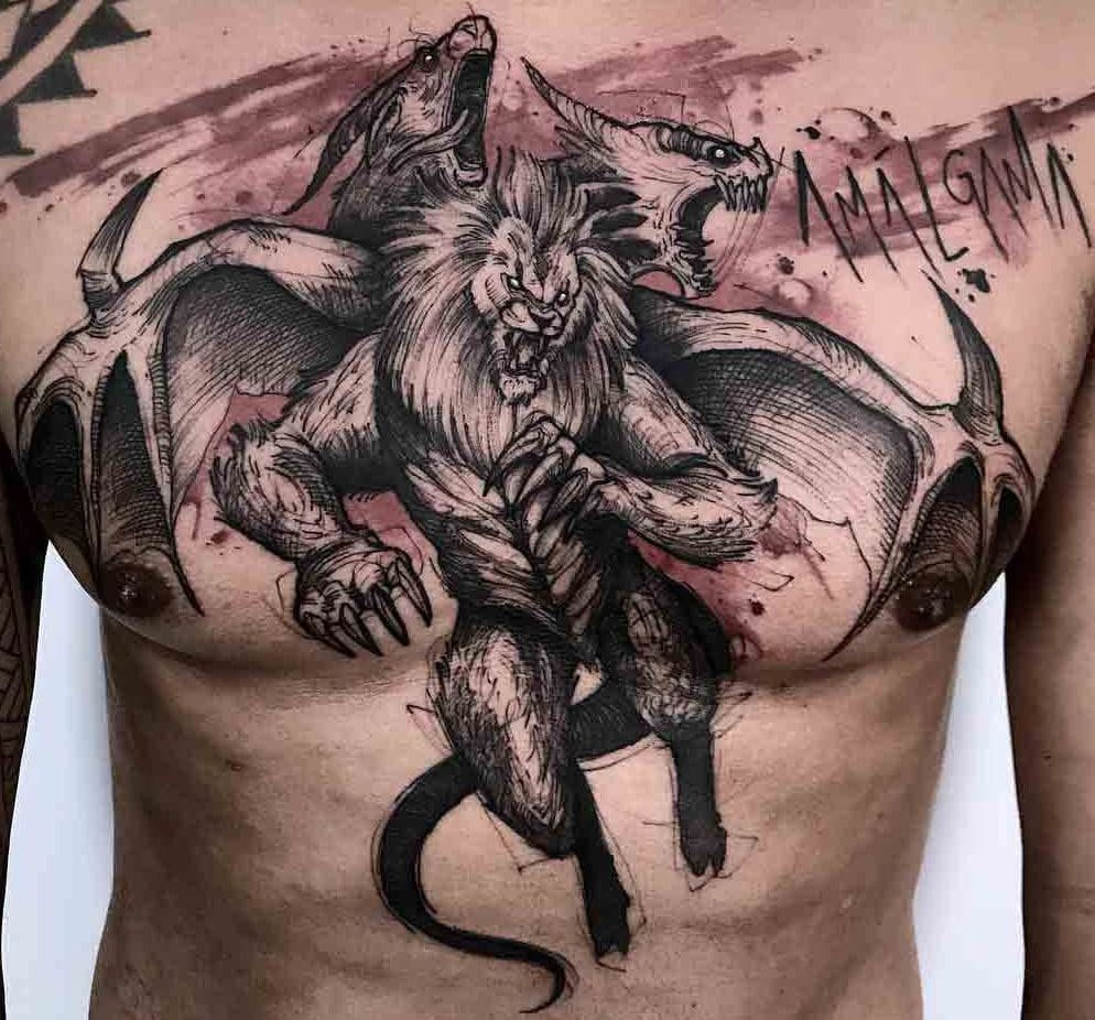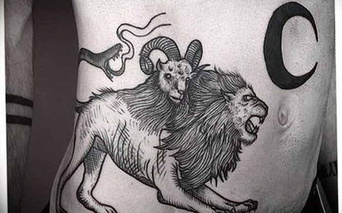 - Химера втілює в собі суміш несумісного, таким чином, тату із зображенням даної істоти позначає те, що в людині змішані різні риси характеру, які на перший погляд, не поєднуються один з одним.