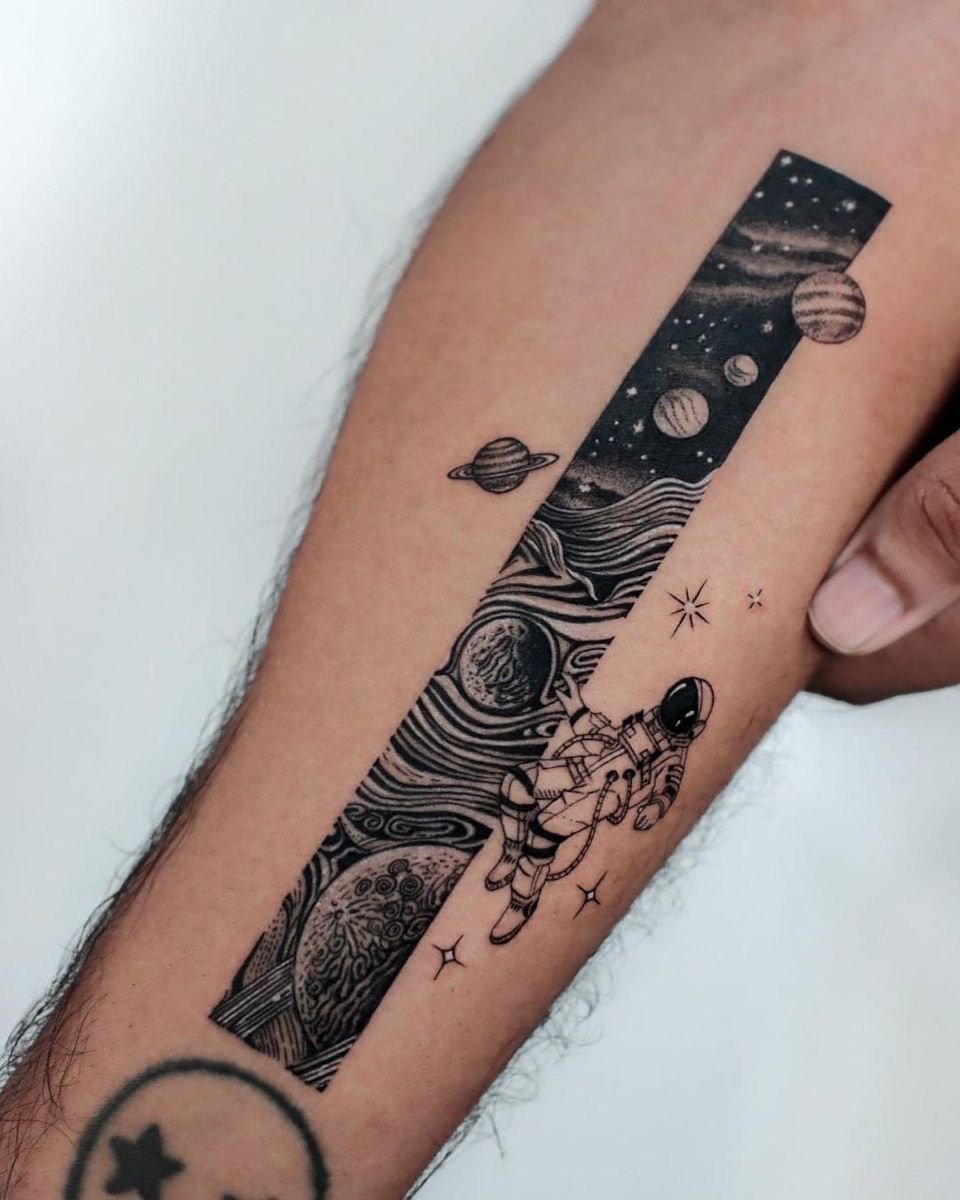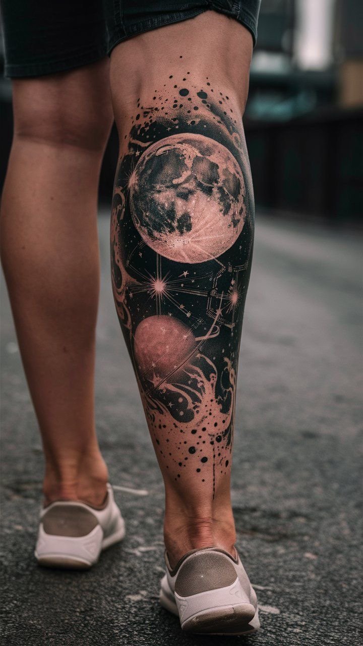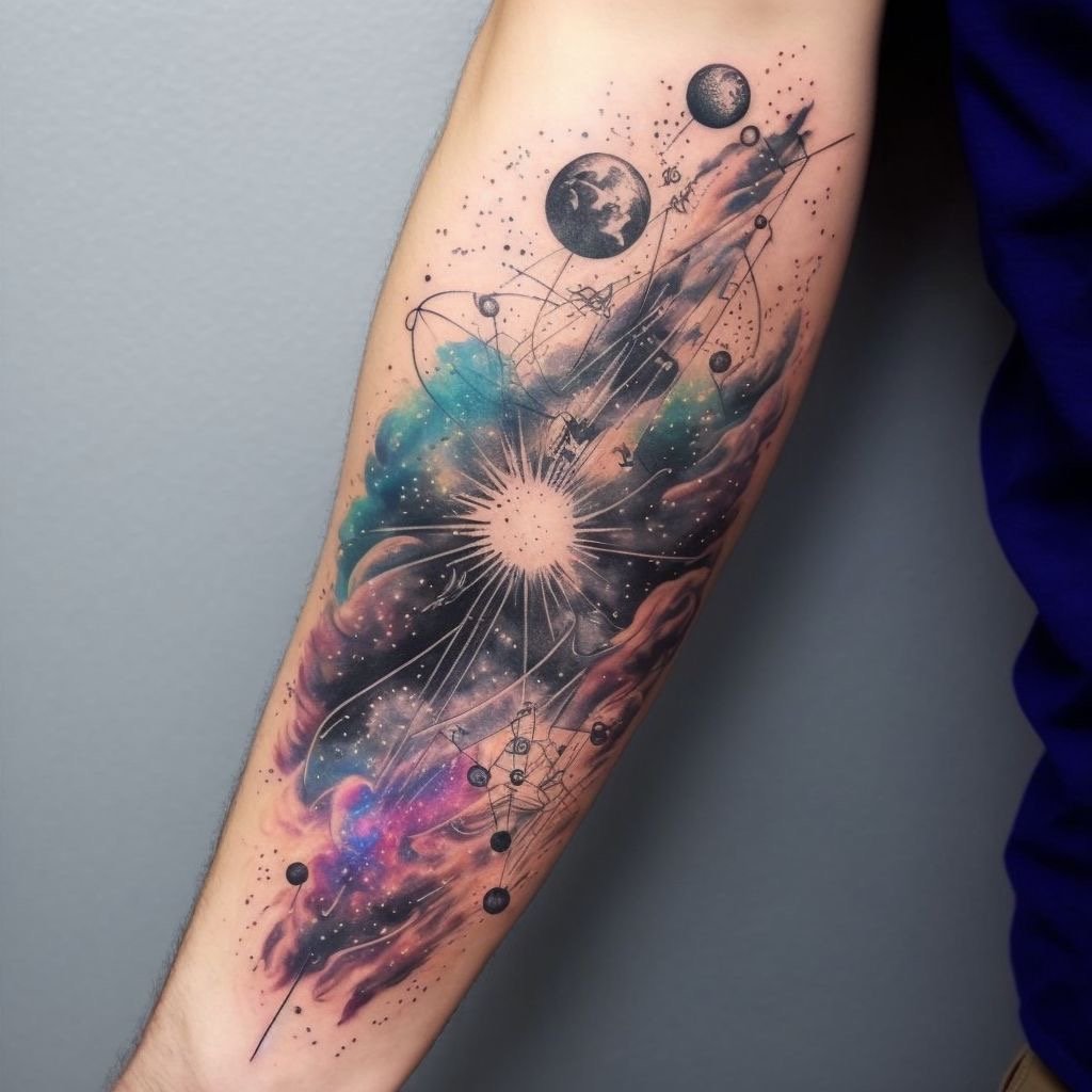 Татуювання із зображенням космосу – це не просто естетично гарний малюнок, а глибокий образ, що відображає нескінченність, таємниці світобудови й бажання пізнання.